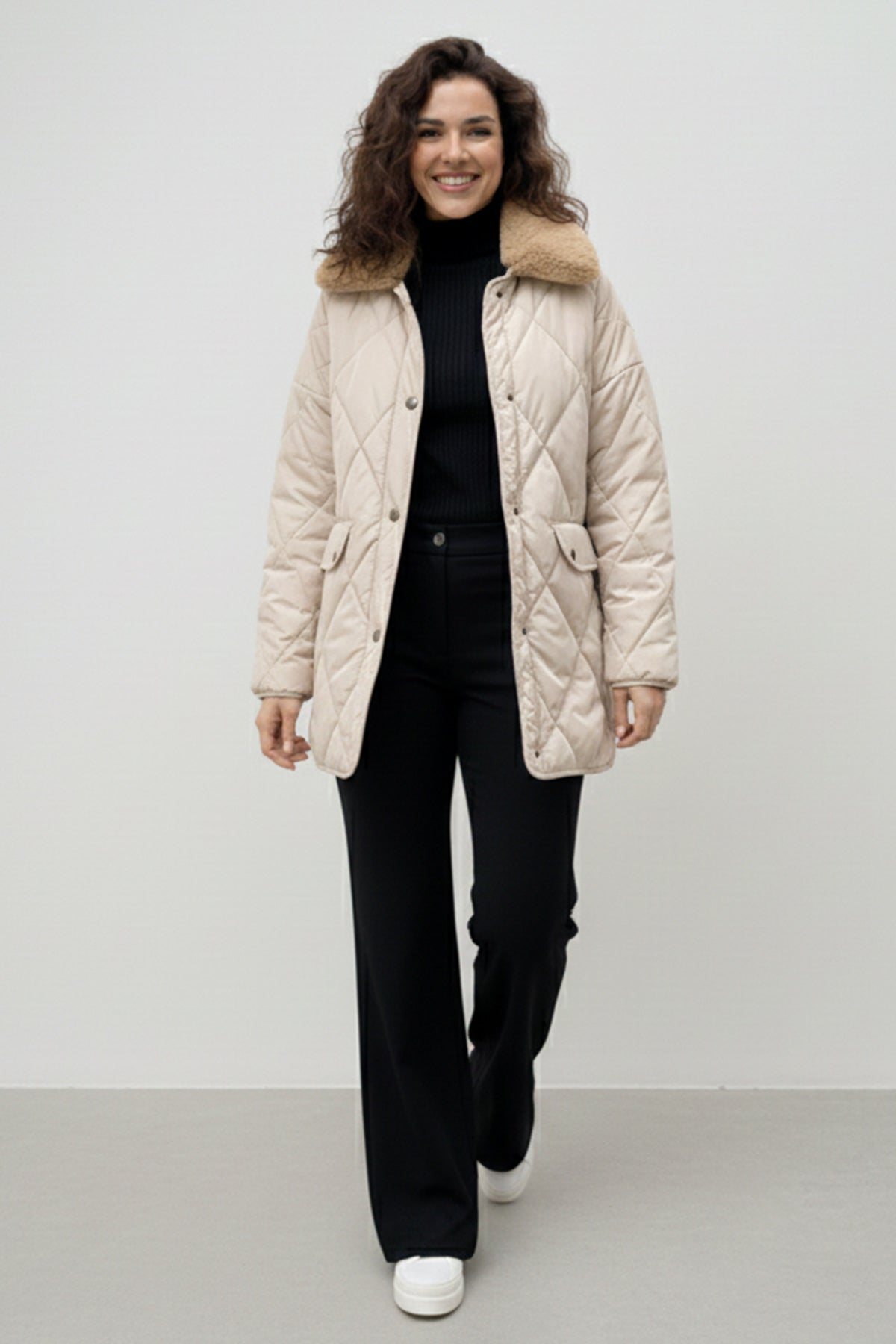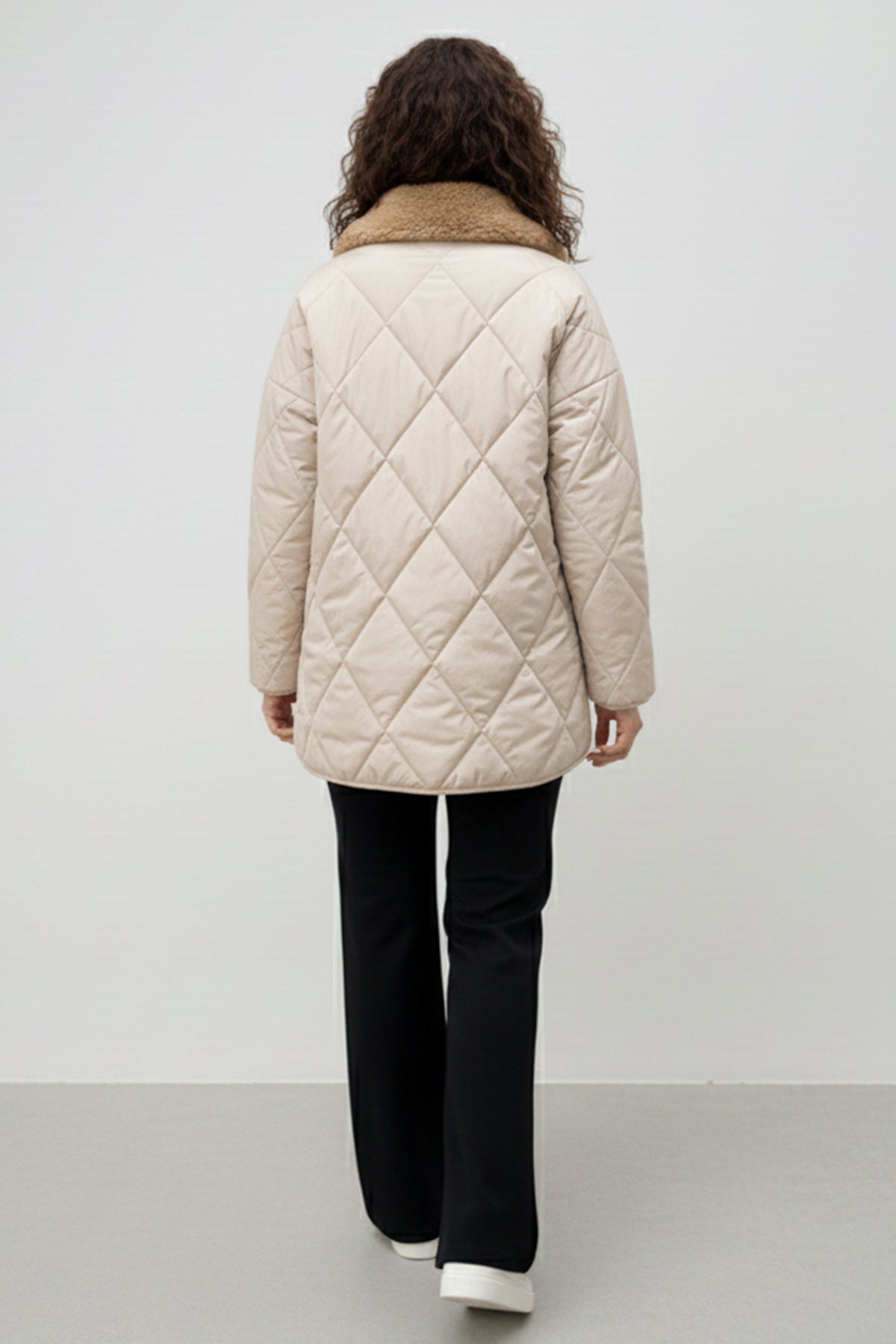 BNG Women Yakası Kürklü Kapitone Mont K9180 Taş Rengi - Merksem