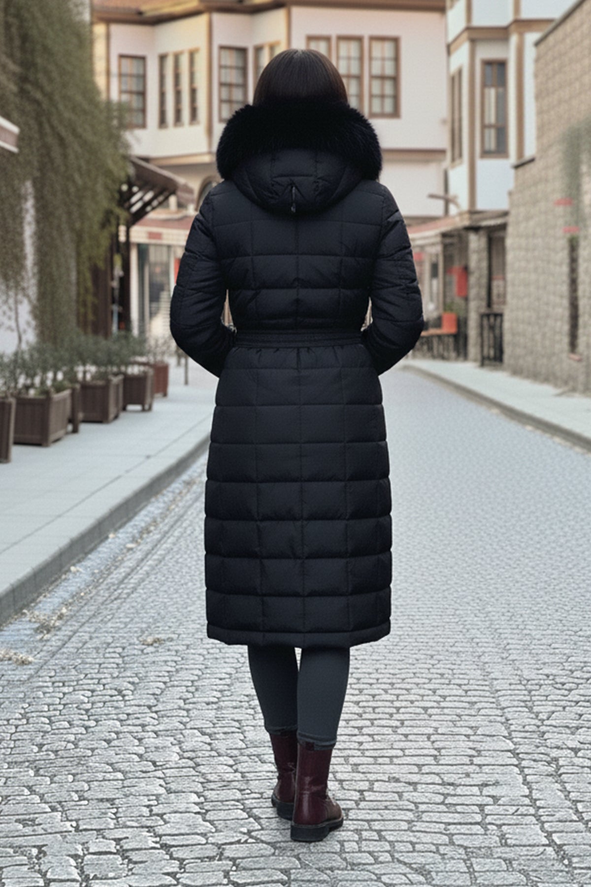 BNG Women Yakası Kürklü Kapitone Mont O2000 Siyah - San Ramon