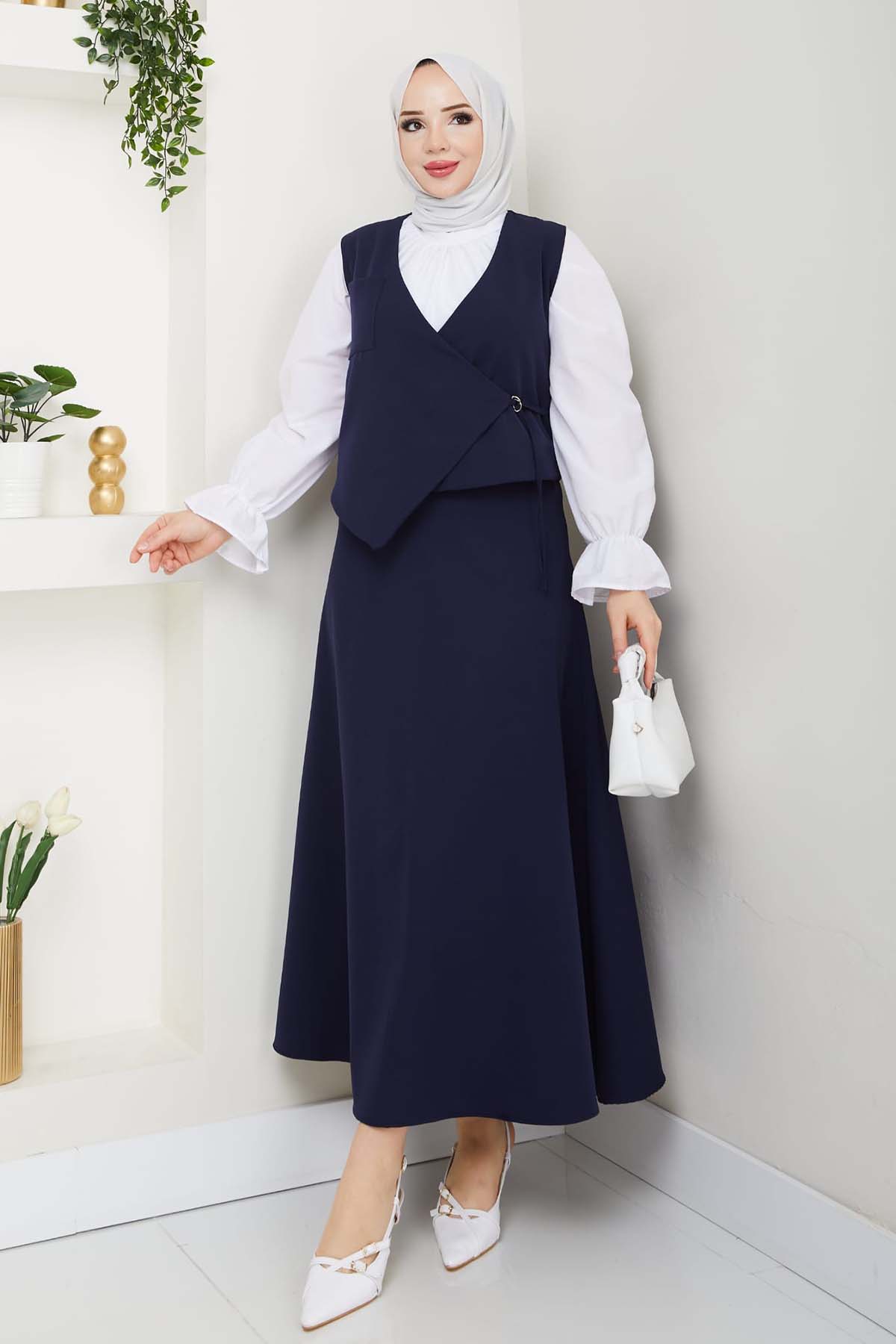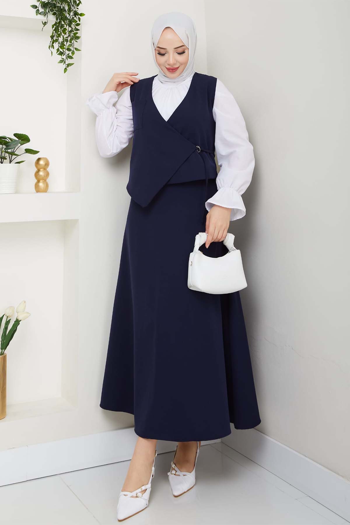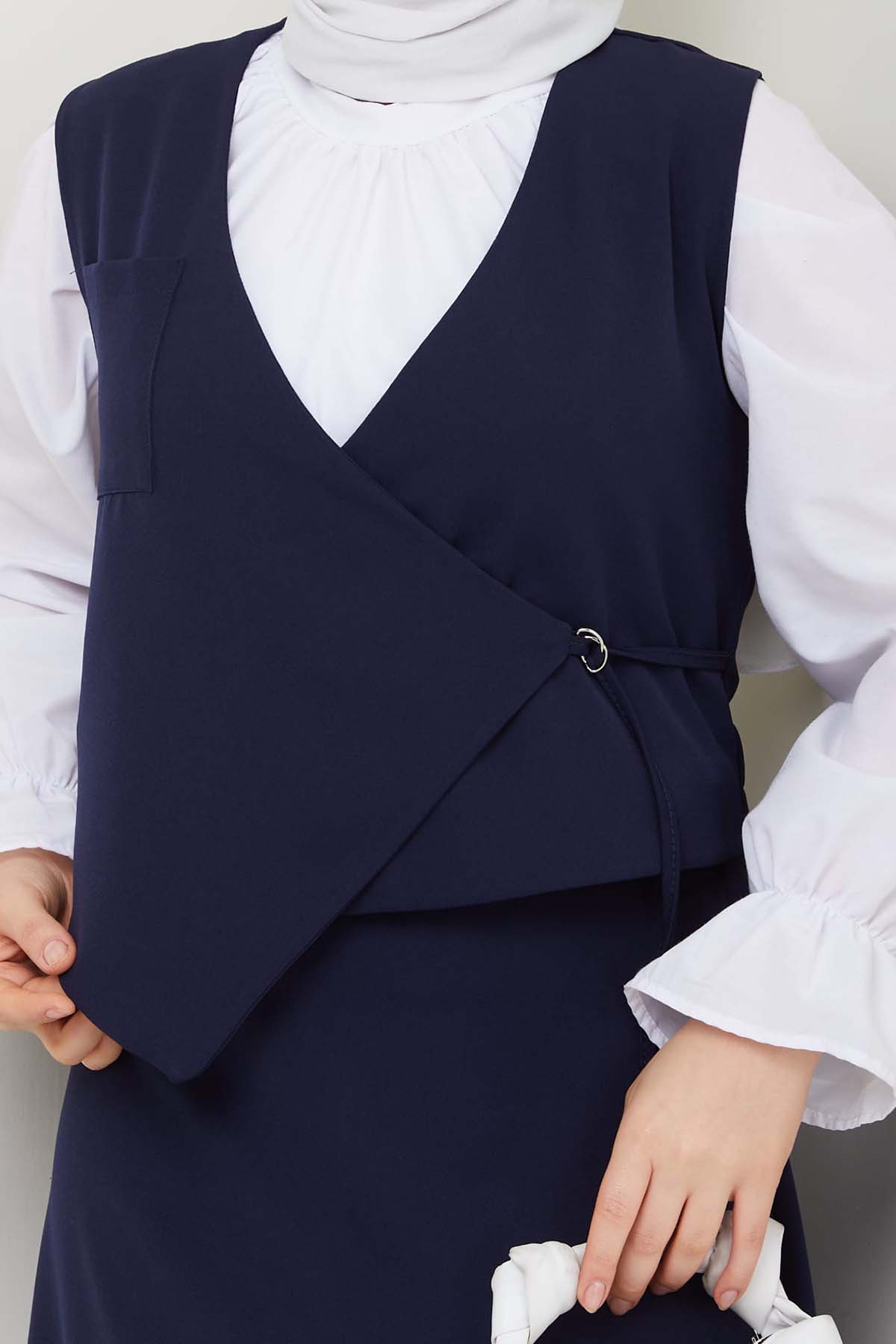 BNG Women Yandan Bağlamalı Yelekli Takım Lacivert 4745 - St. George