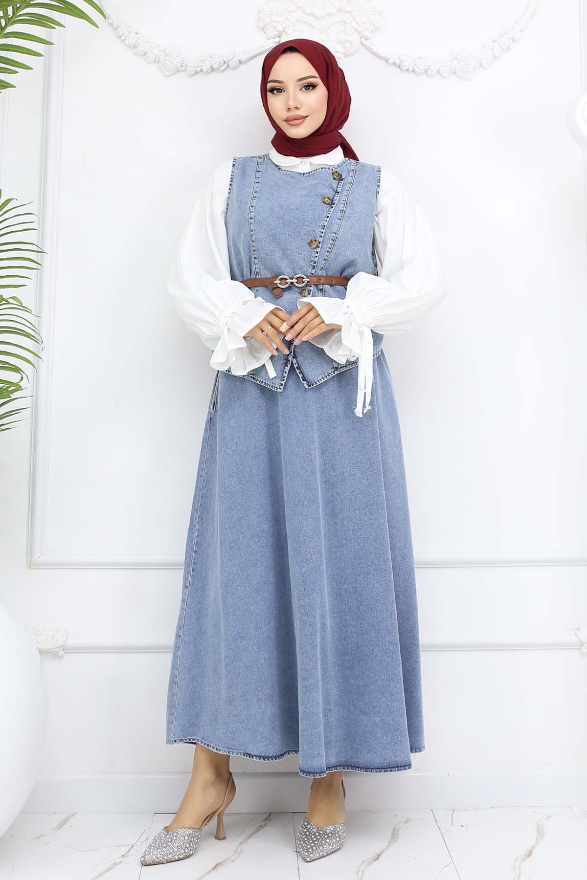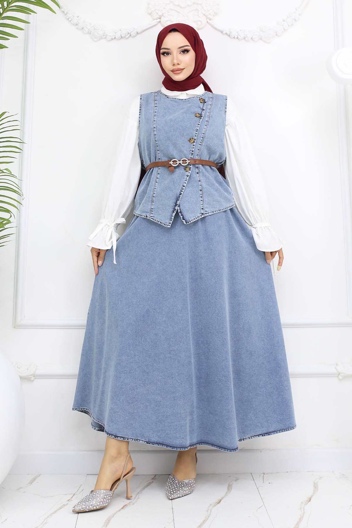 BNG Women Yelek Etek İkili Kot Takım Mavi 357 - Reutlingen