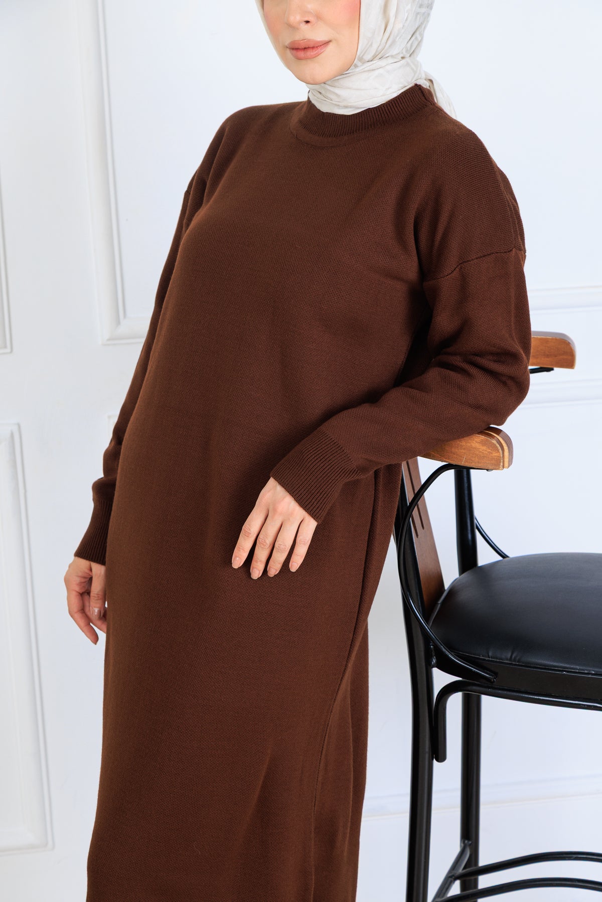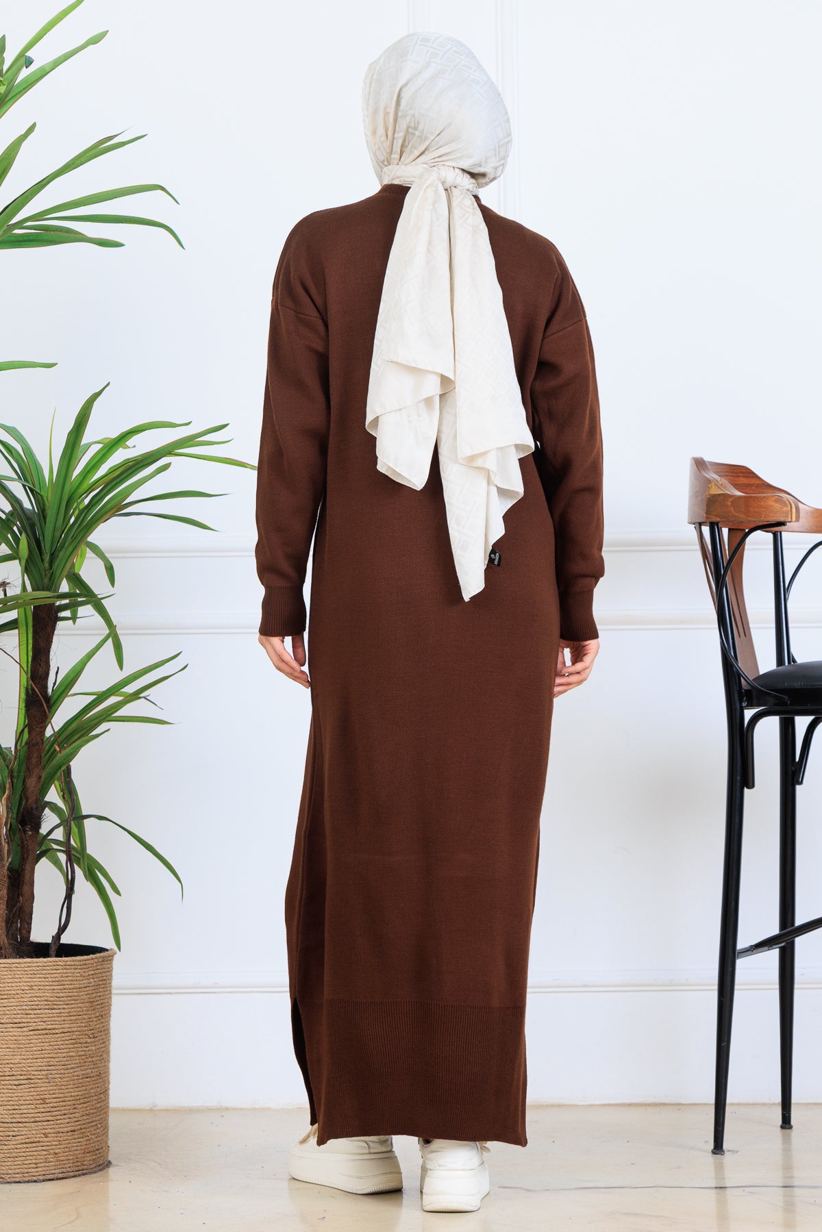 BNG Women Yırtmaç Detaylı Triko Elbise S510 Kahverengi - Yuriria