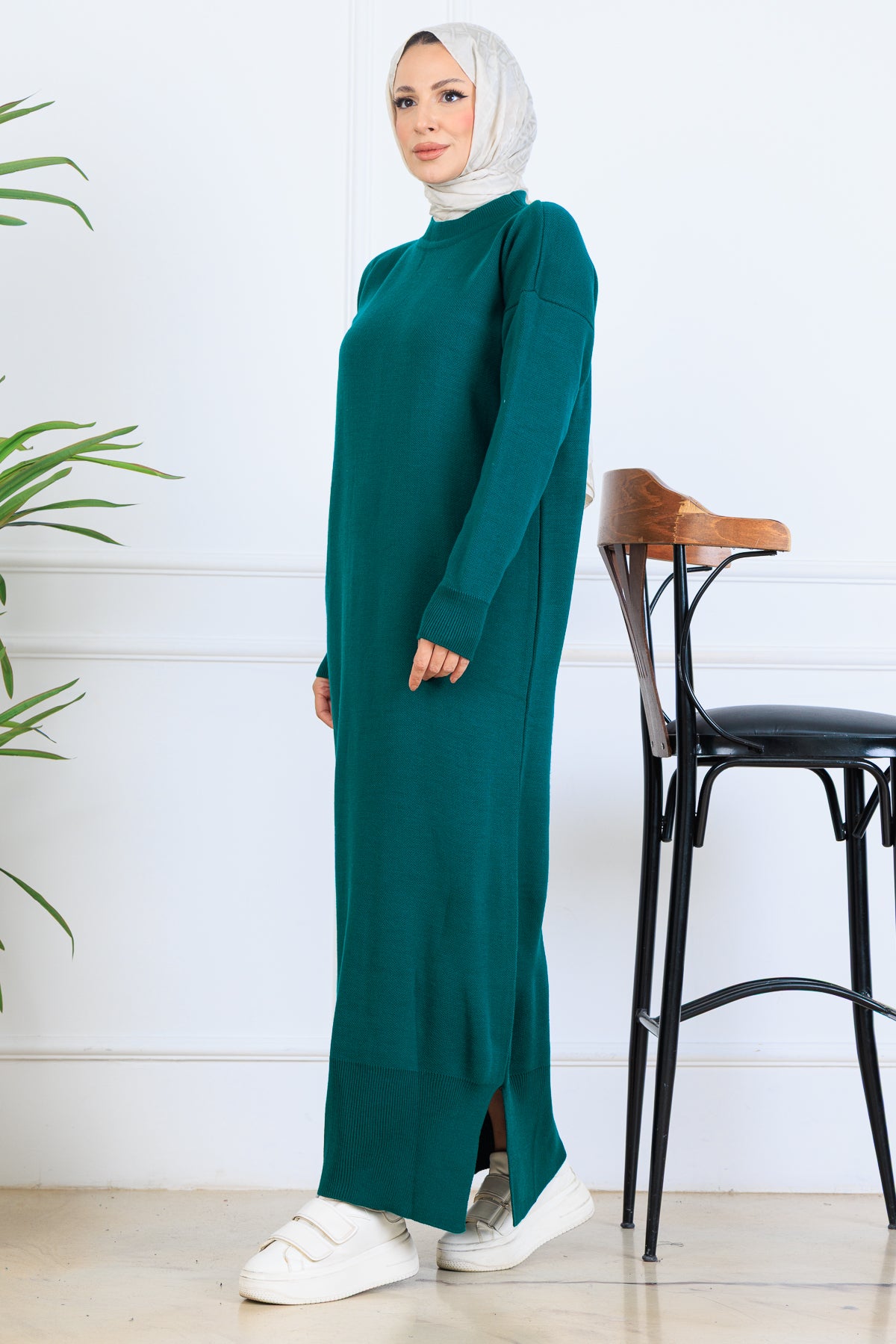 BNG Women Yırtmaç Detaylı Triko Elbise S510 Zümrüt Yeşili - Grenoble
