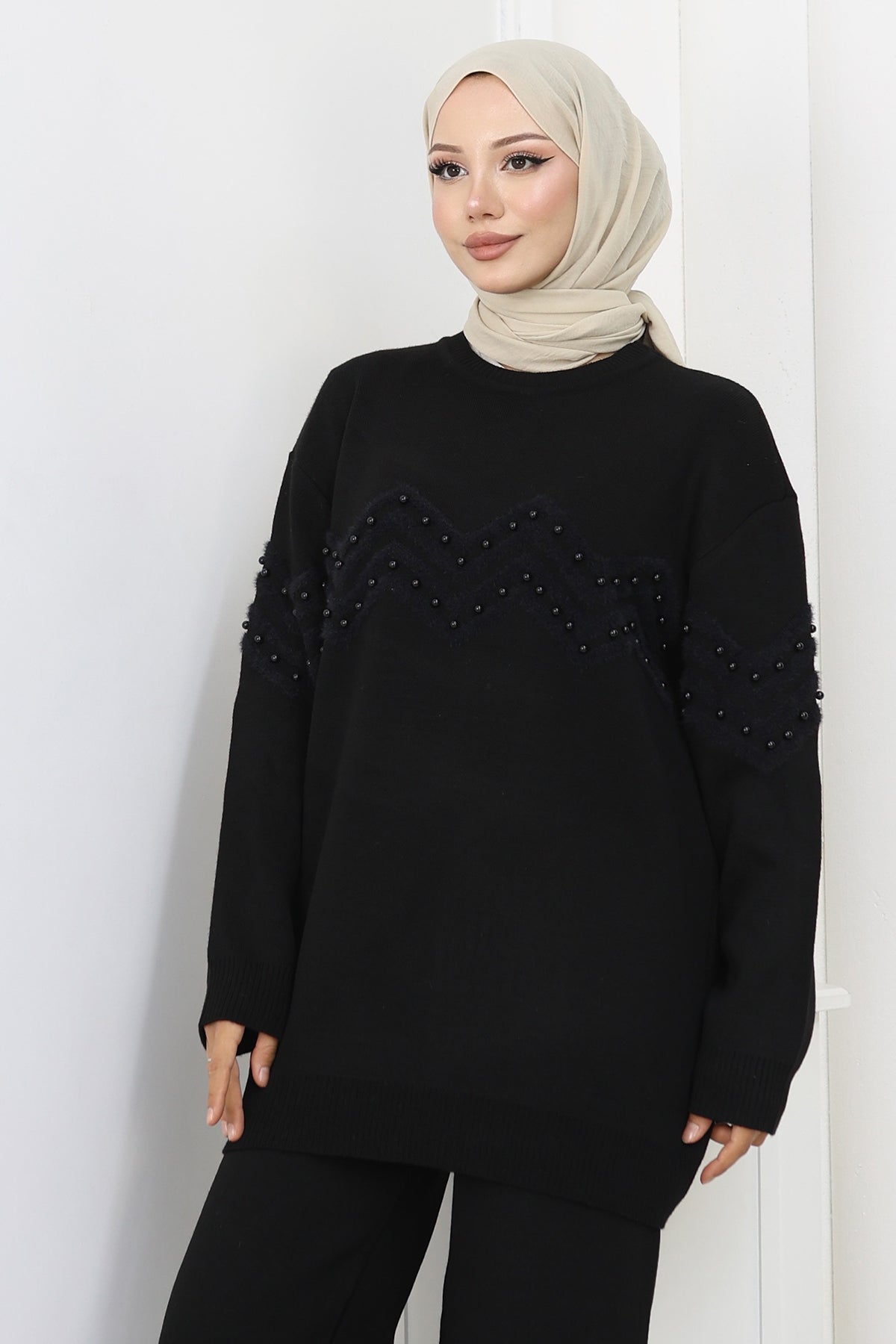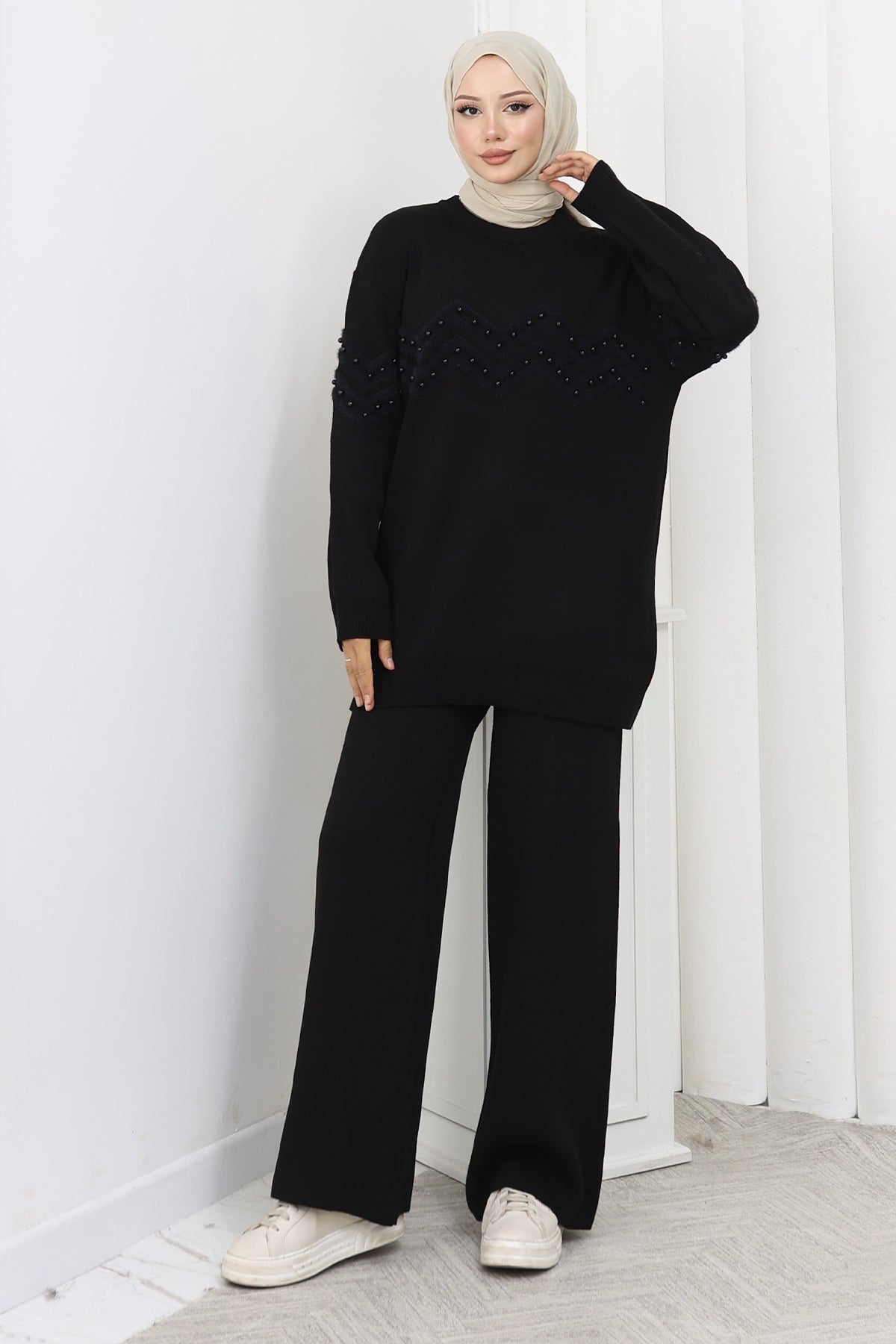 Product Feature: The product is true to size, you can choose your regular size. Product Information: Top Length: 47 cm, Pant Length: 102 cmFabric Type: 100% AcrylicModel Measurements: Height: 168 cm, Bust: 83 cm, Waist: 68 cm, Hips: 90 cm.Product on the model: Size M/38. Our product is compatible with sizes 38-42. It is a standard size. There may be a slight color difference due to concept shootings in the product color.