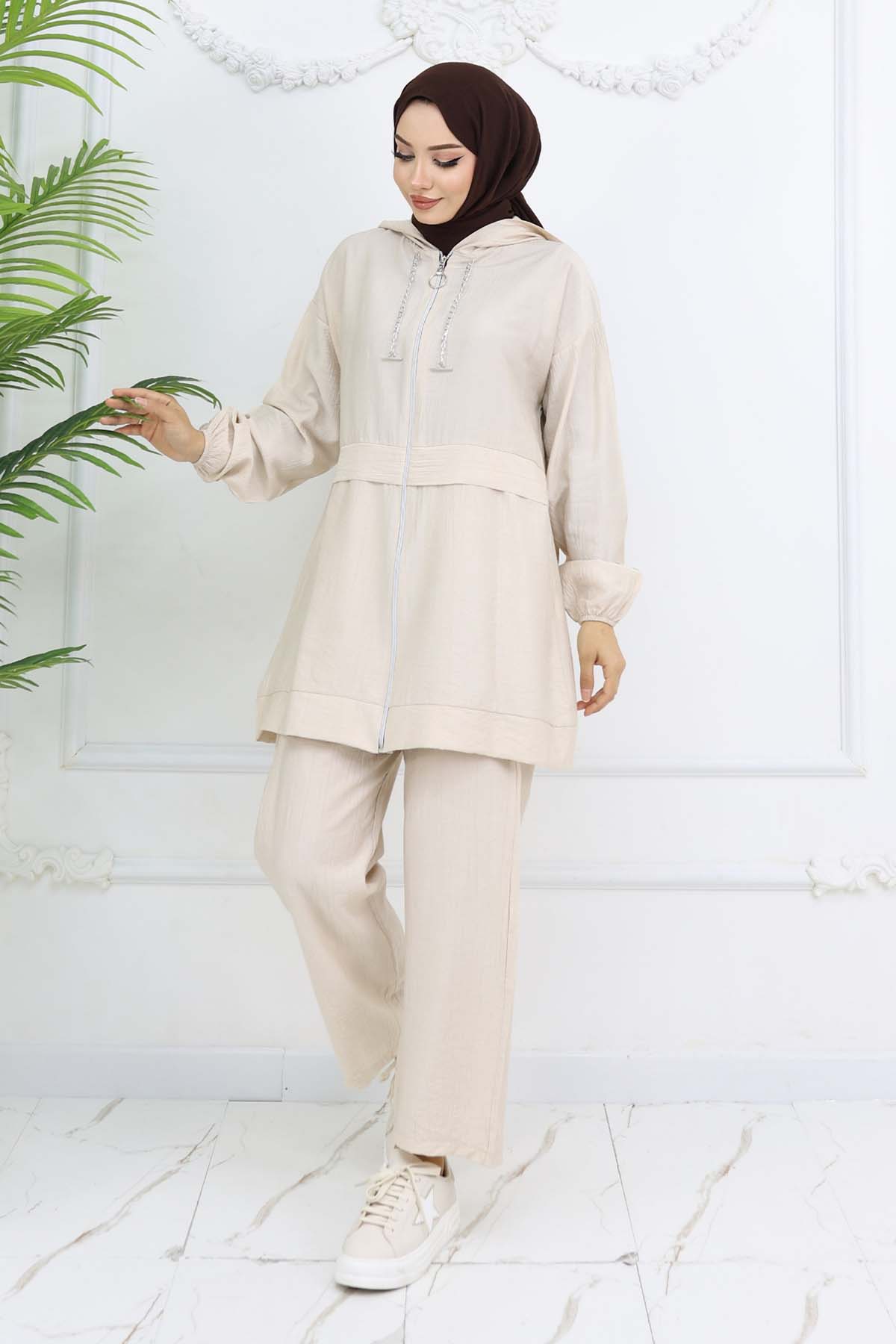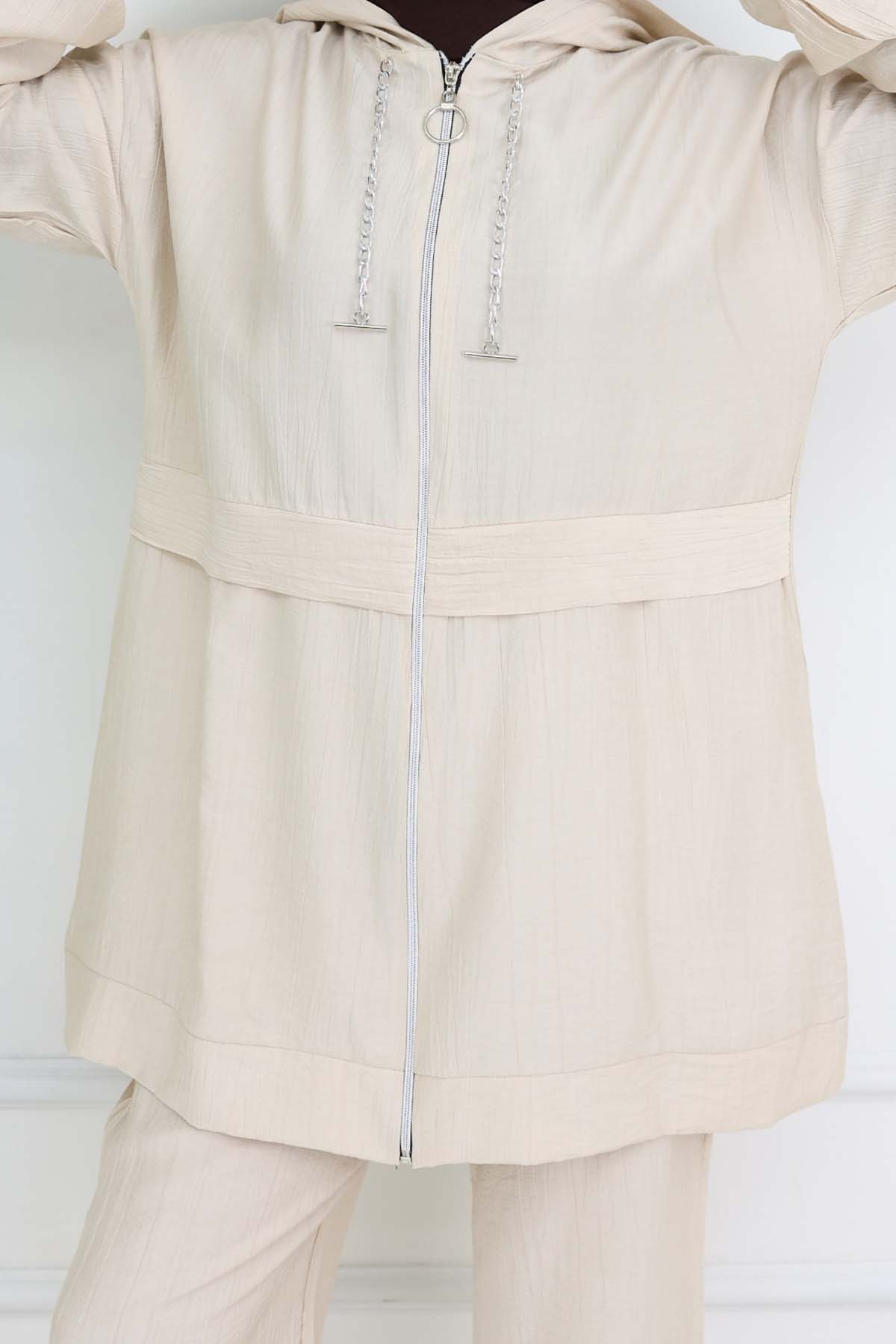 BNG Women Zincir Detaylı Tesettür Takım Taş Rengi 4760 - Mainz