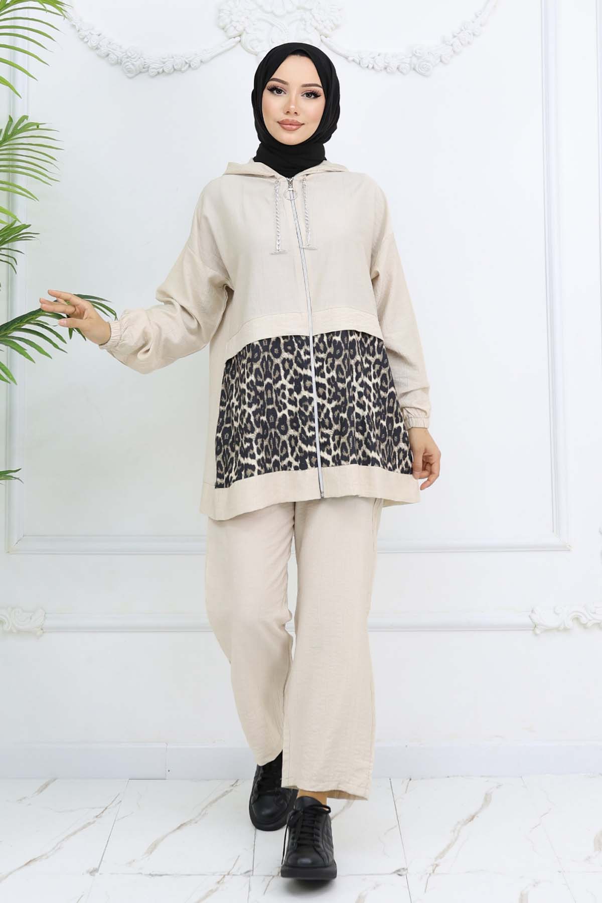 BNG Women Zincirli Leopar Desenli Takım Taş Rengi 4748 - Venray