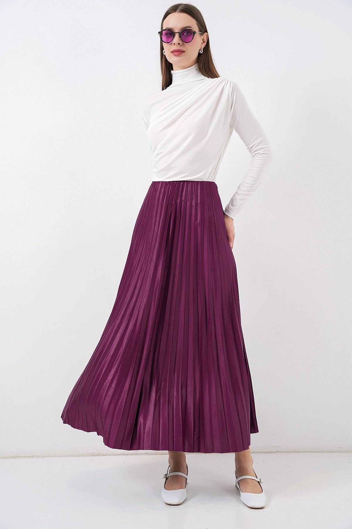 BGD Women Faux Leather Pleated Skirt - Purple - Country Club