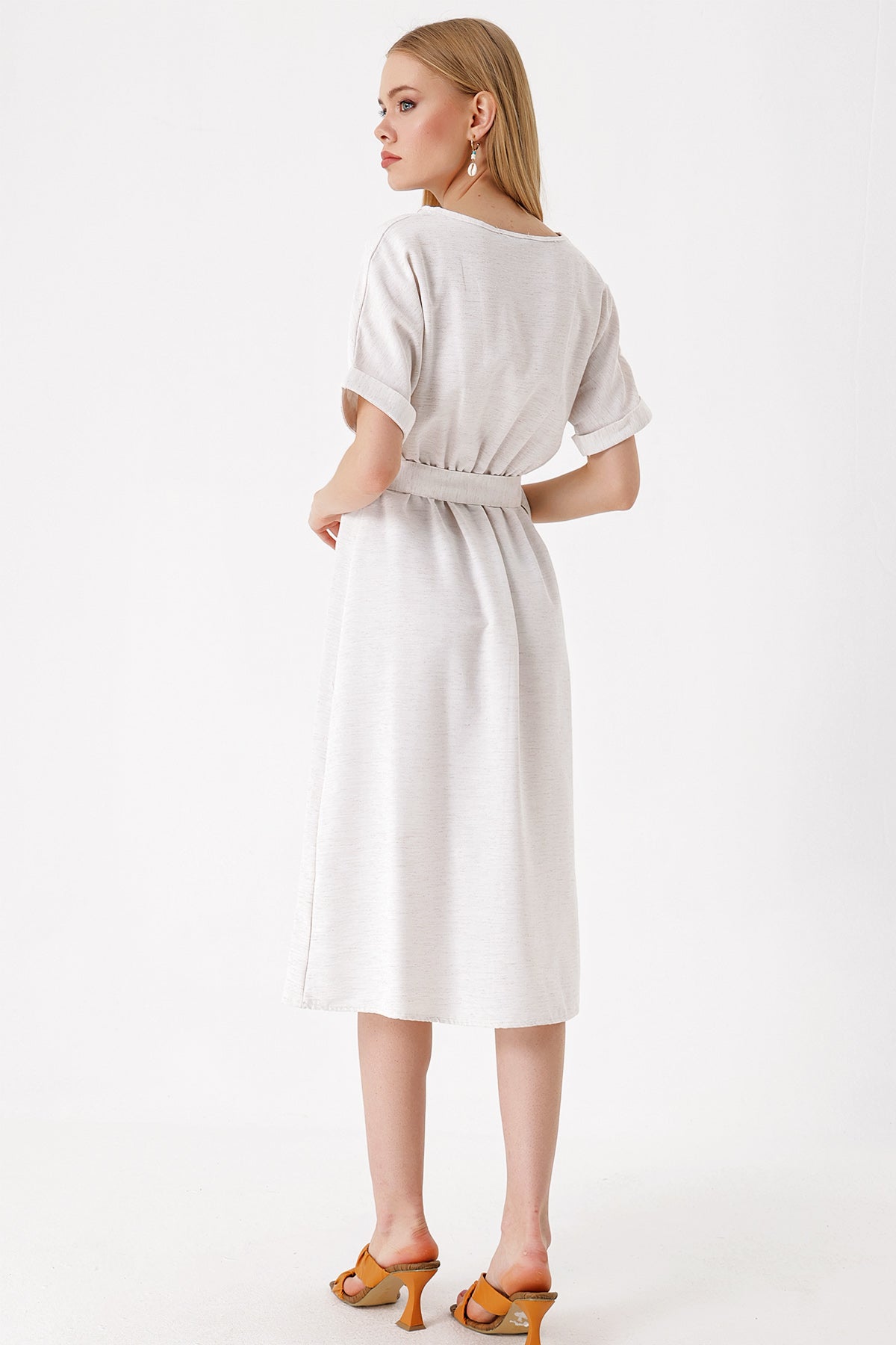 BGD Women Belted Linen Dress - Ecru - Avondale