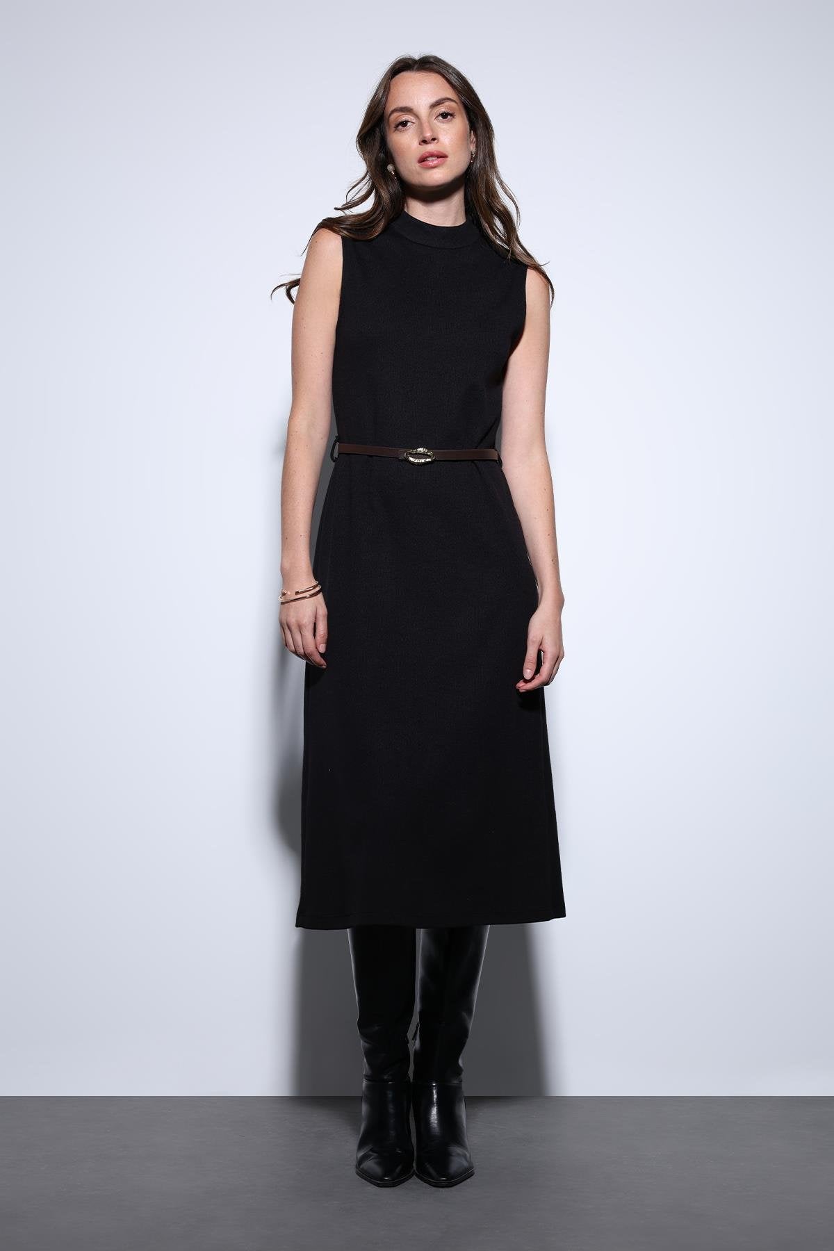 ANT Antioch Black Belt Detailed Women's Midi Dress - Eccles