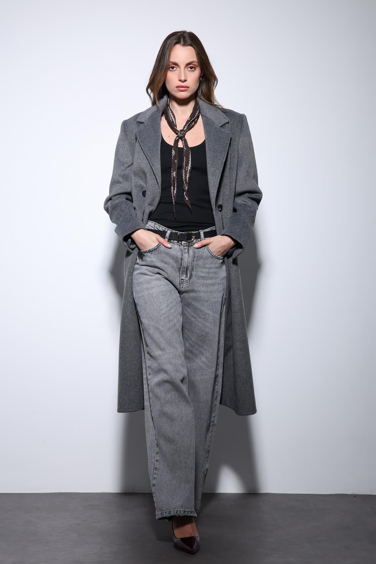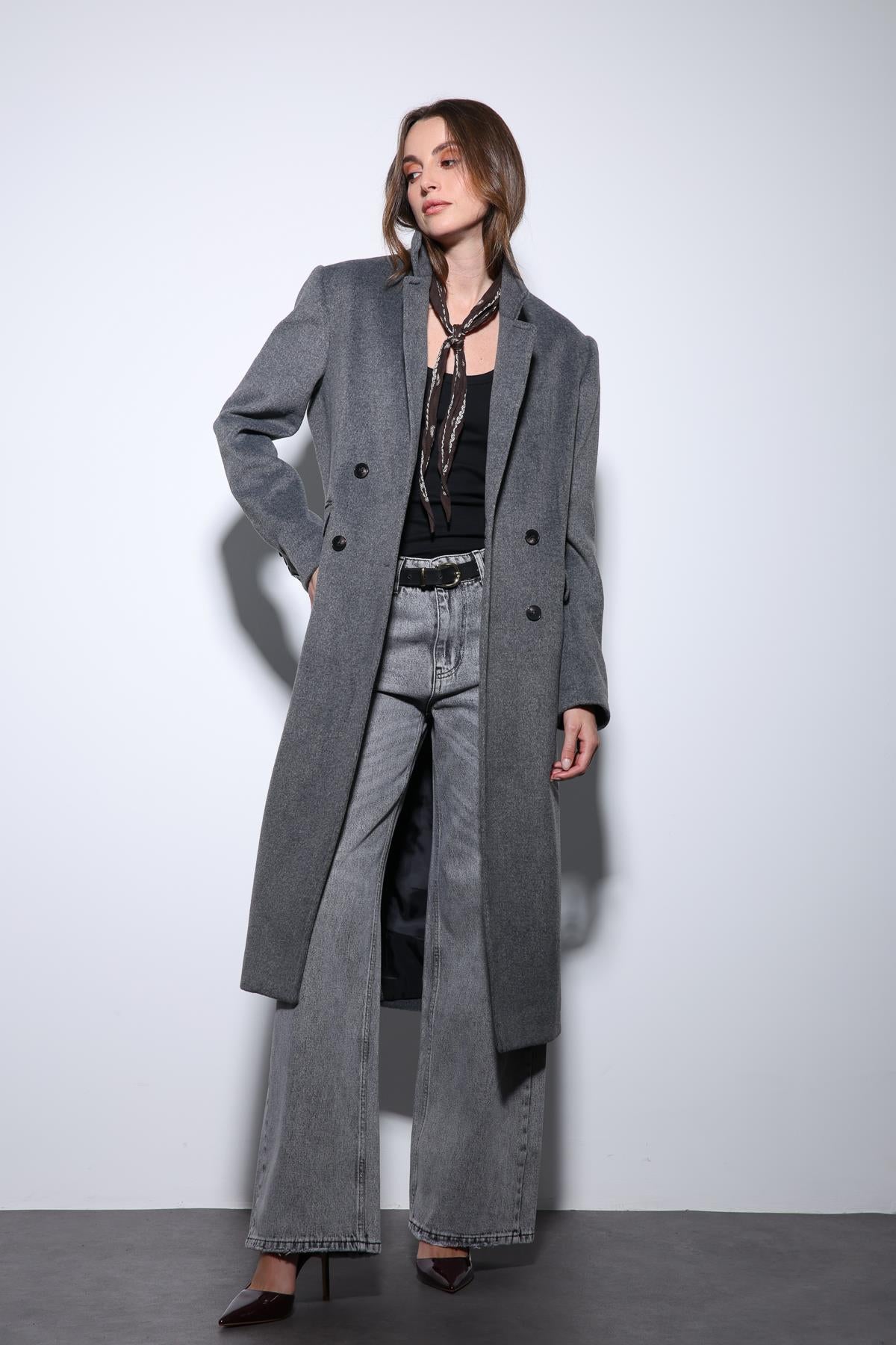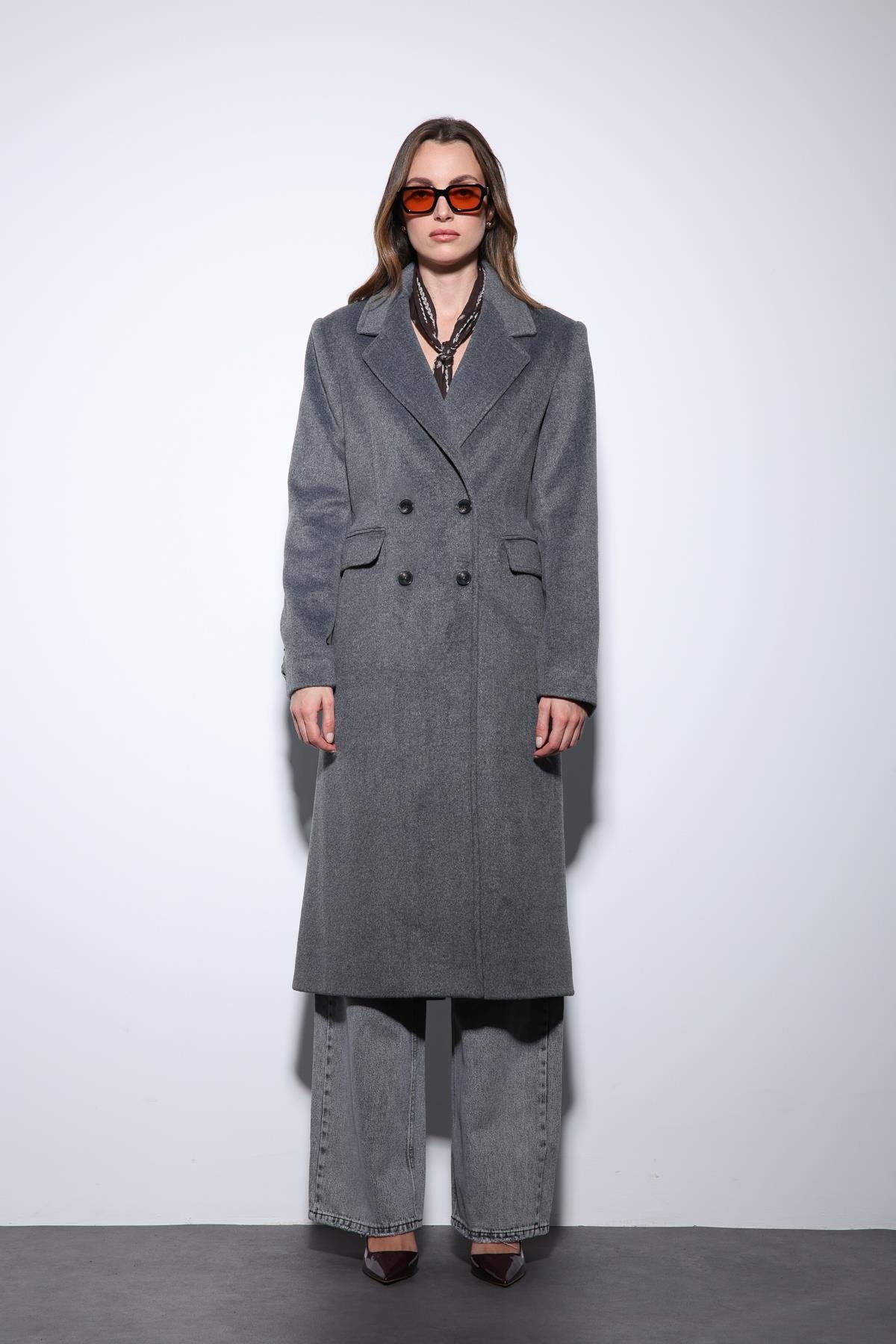 ANT Antioch Anthracite Wool Blend Double-Breasted Women's Coat - Vergína