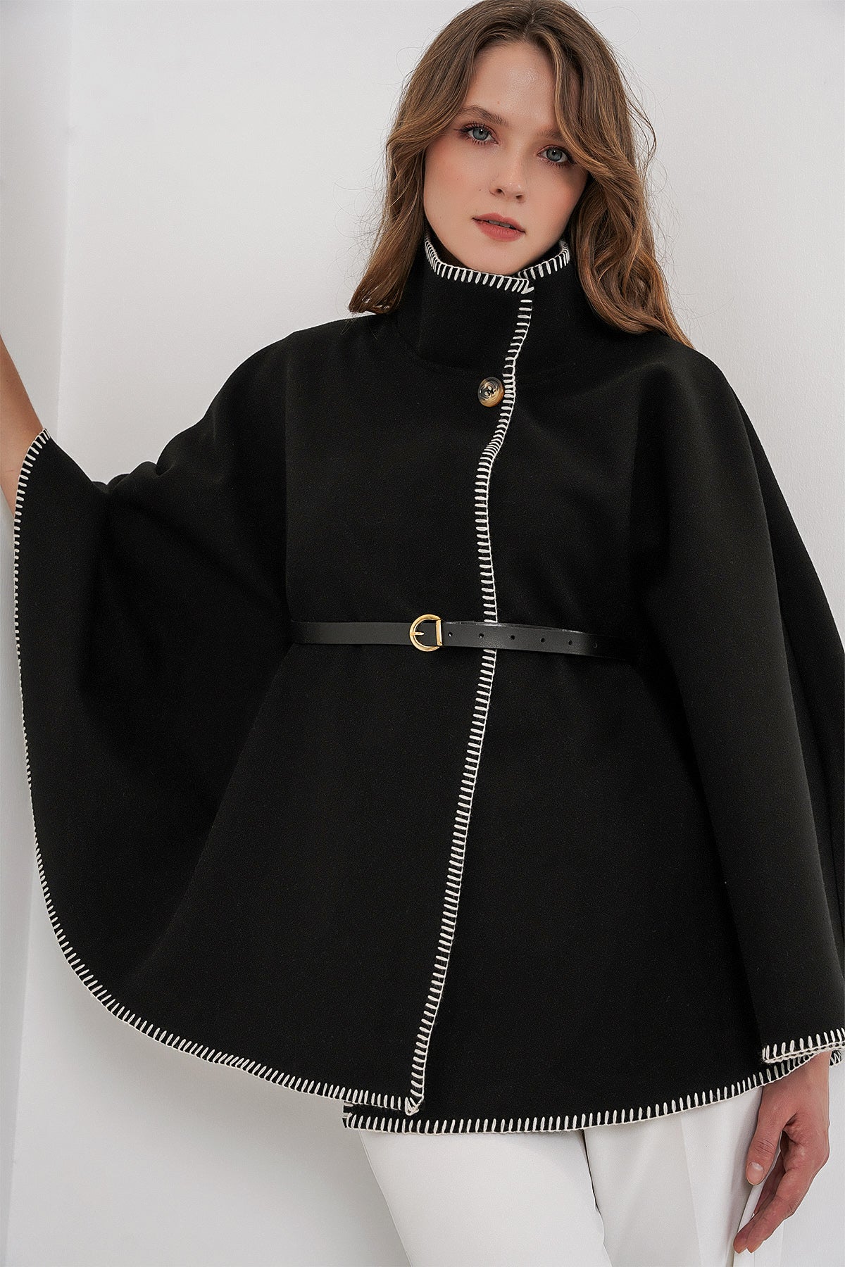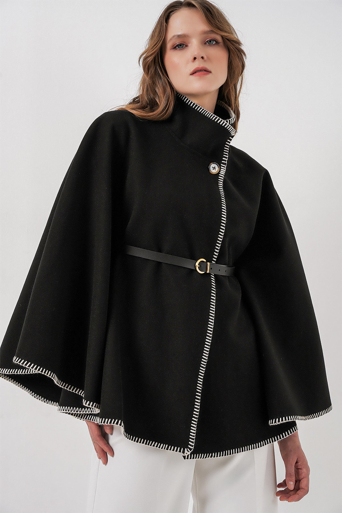 BGD Women Woman's Tailored Cape Coat with Stitch Detail 9166 - Black - Desio