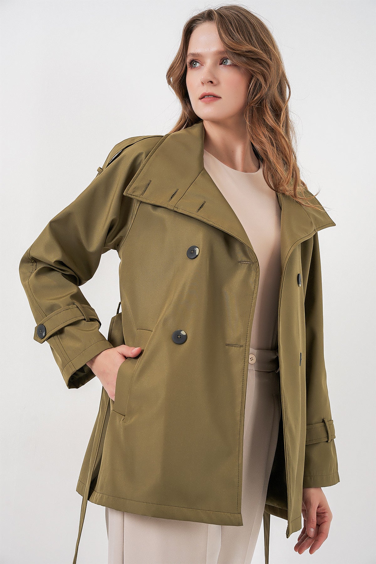 BGD Women Women's Short Trench Coat with Wrap Neck 5980 - Khaki - Chisinau