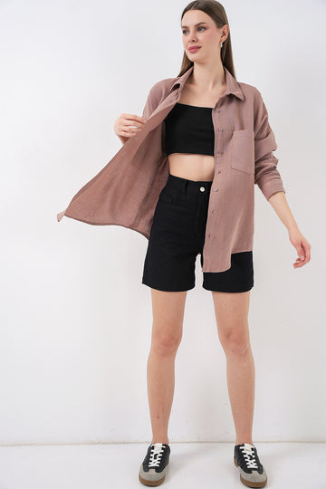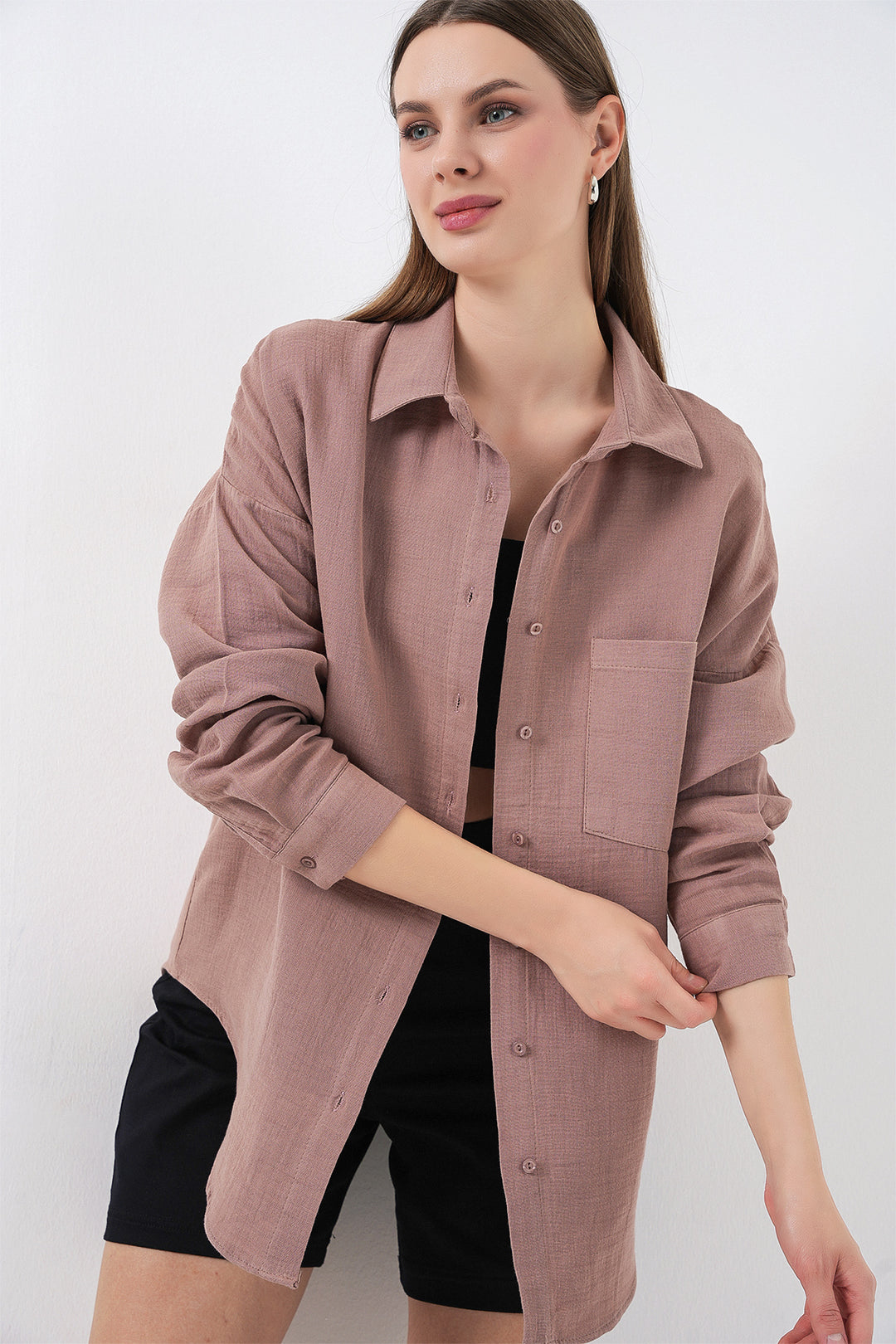 Versatility is a key feature of our oversize tops. They can be easily dressed up or down, making them suitable for various occasions and settings. Your customers can effortlessly achieve a casual and chic look by pairing our oversize tops with leggings or skinny jeans, adding a few accessories for a touch of flair. For a more polished ensemble, they can layer them with a fitted blazer or jacket and complete the outfit with heels or ankle boots. The versatility of our wholesale women's oversize tops allows your customers to create endless fashion combinations that reflect their personal style.