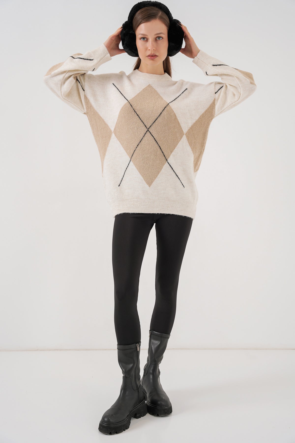 BGD Women Baklava Patterned Oversized Sweater - Cream - Rho