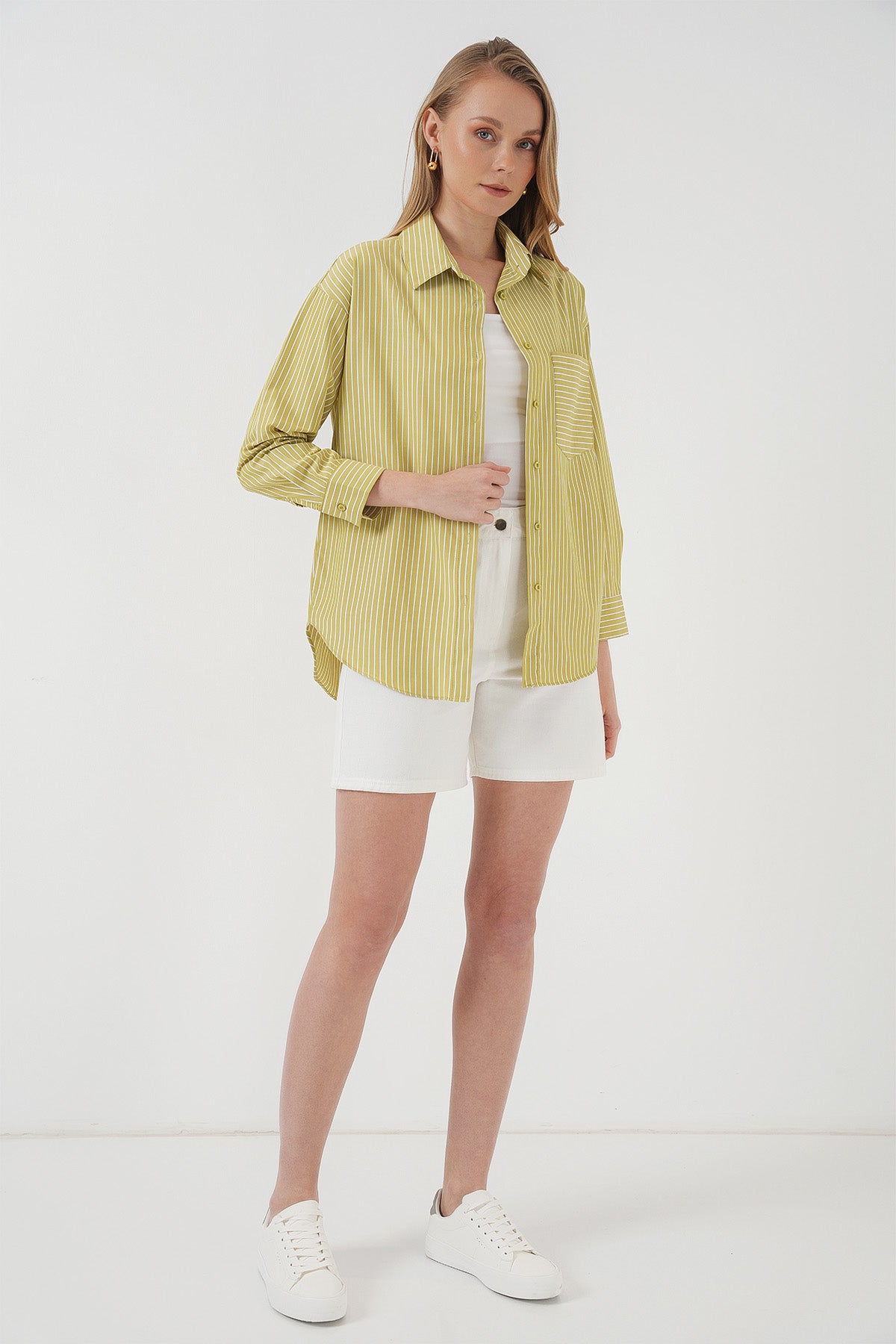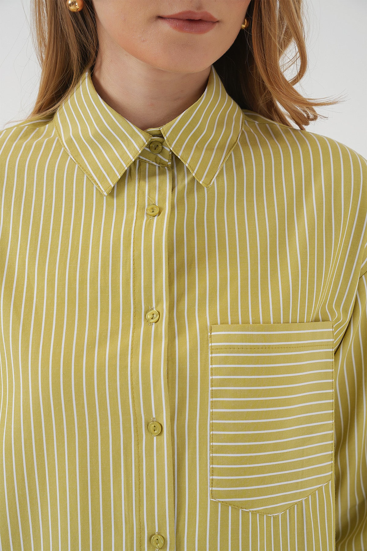 BGD Women Çizgili Oversize Gömlek - Yağ Yeşil - Decatur