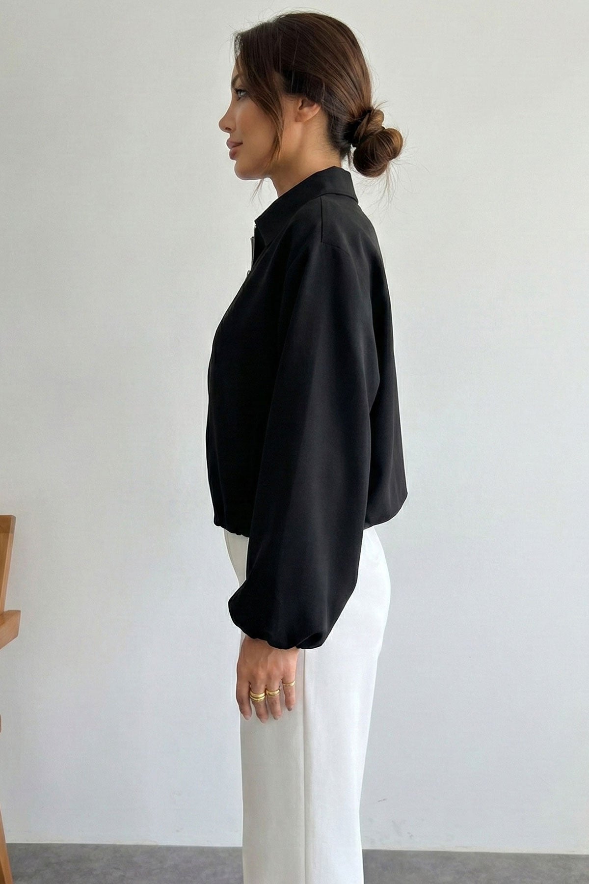 BGD Women Women's Oversized Zippered Jacket 0735 - Black - Blackburn