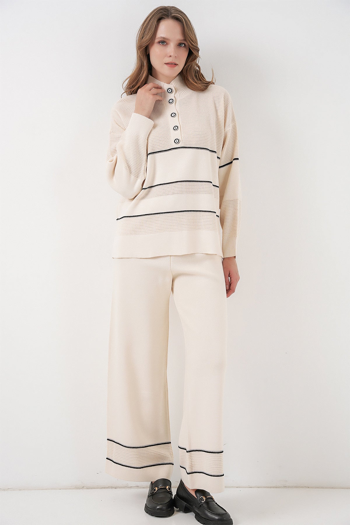 Kadin Çizgili Oversize Triko Ikili Takim 15957
