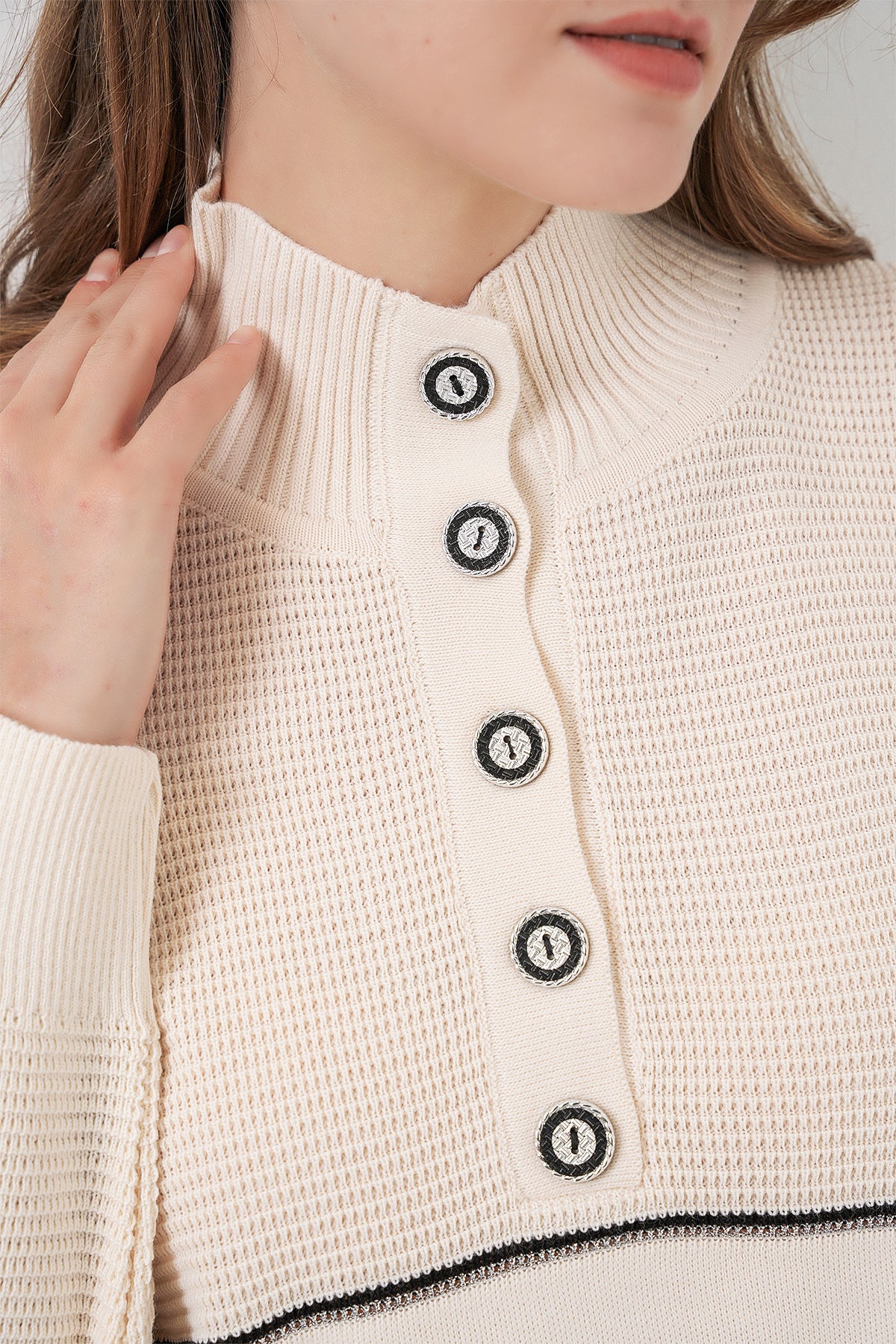 BGD Women Women's Striped Oversized Knitwear Set 15957 - Ecru - Gilbert