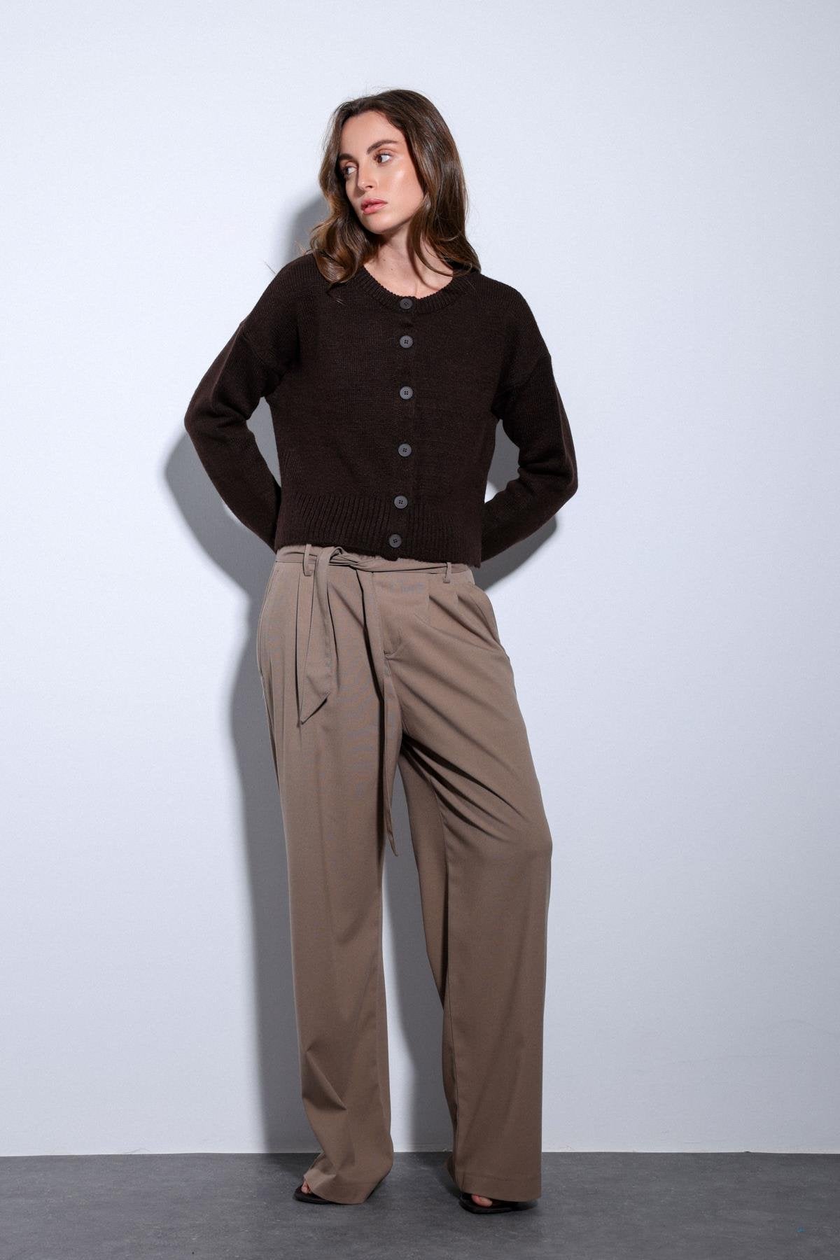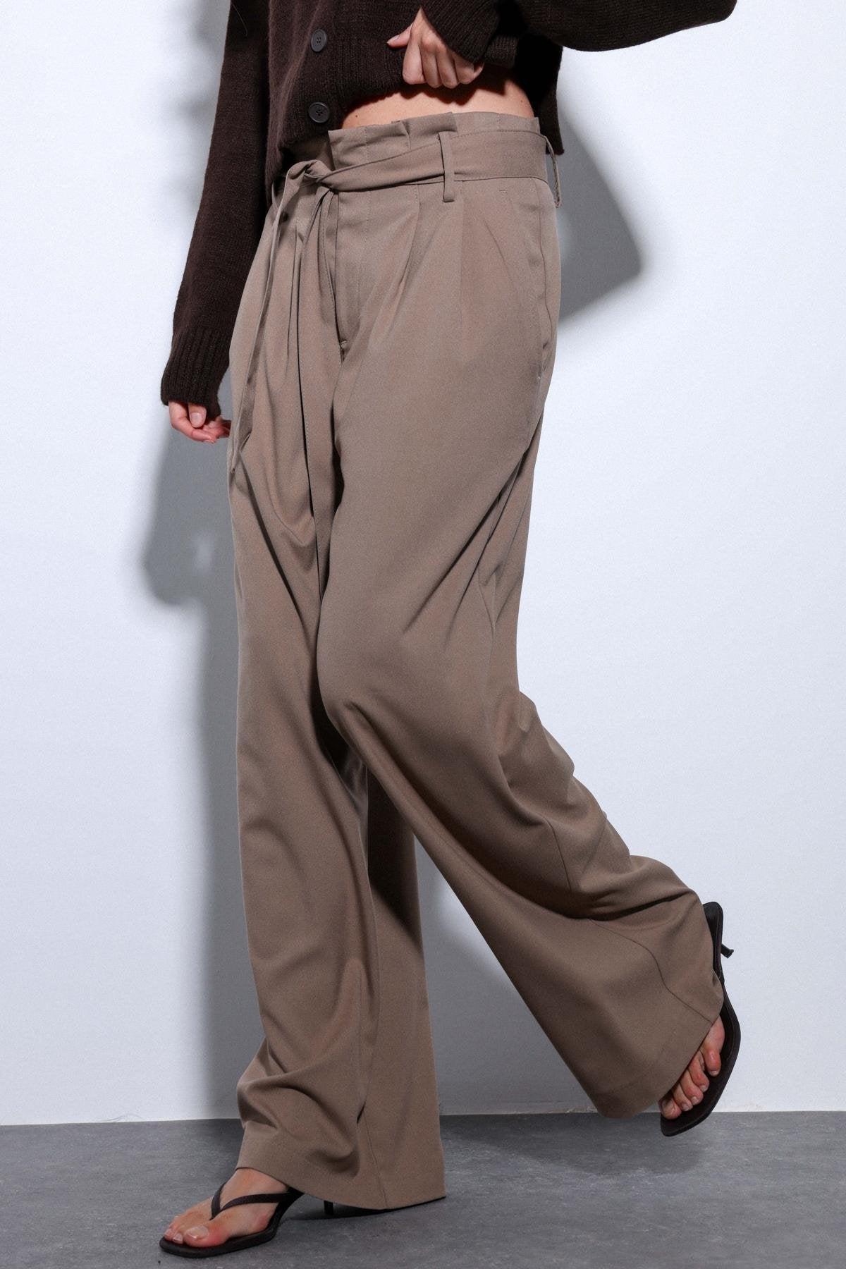 ANT Antioch Mink Belted Pleated Wide Leg Women's Pants - Evans