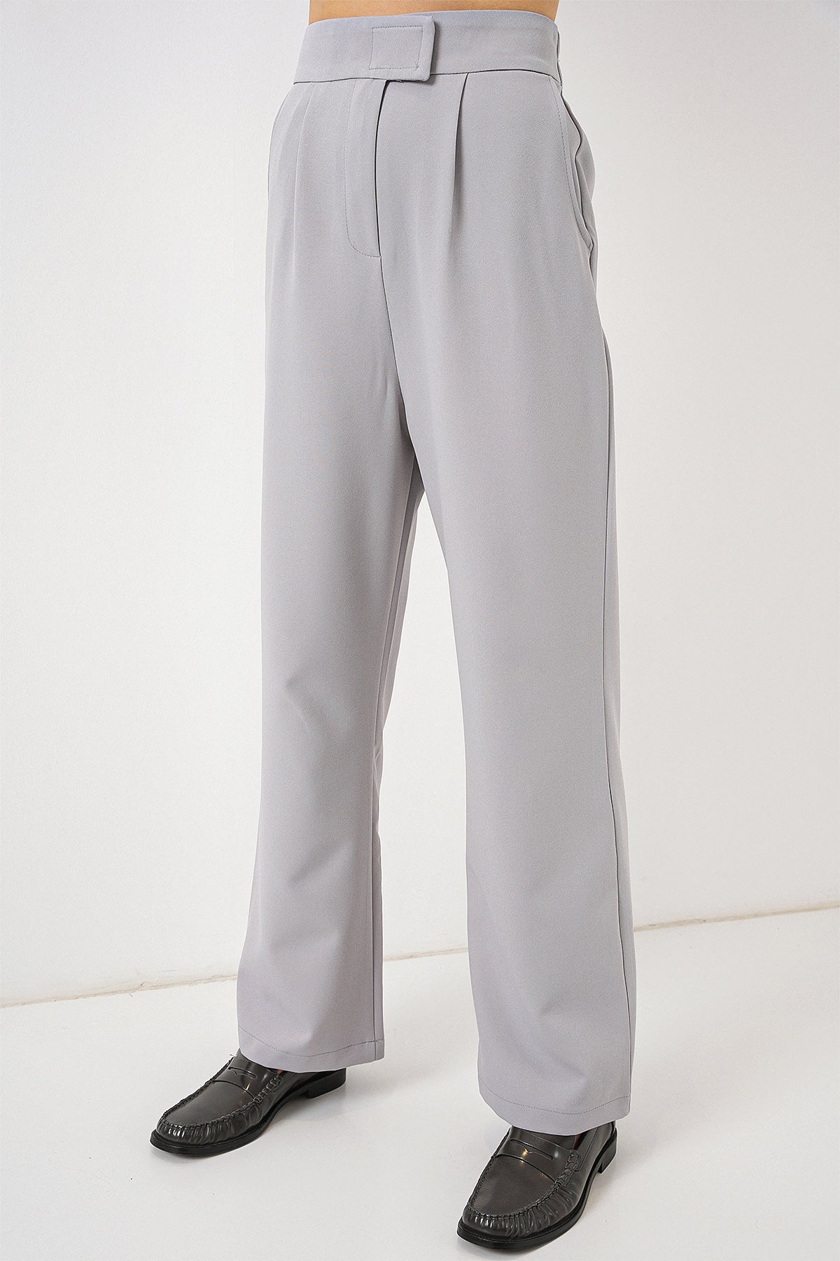 BGD Women High Waist Fabric Pants - Gray - Bergheim