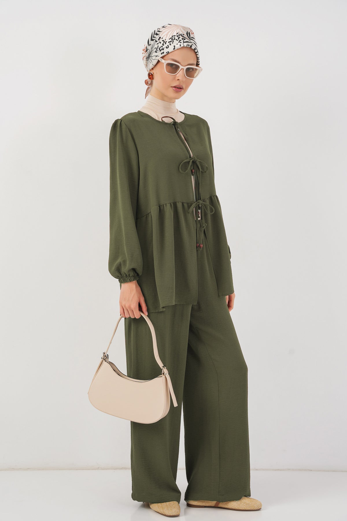 BGD Women Women's Front Lace-Up Tunic Pants Set 6744 - Khaki - Salamanca