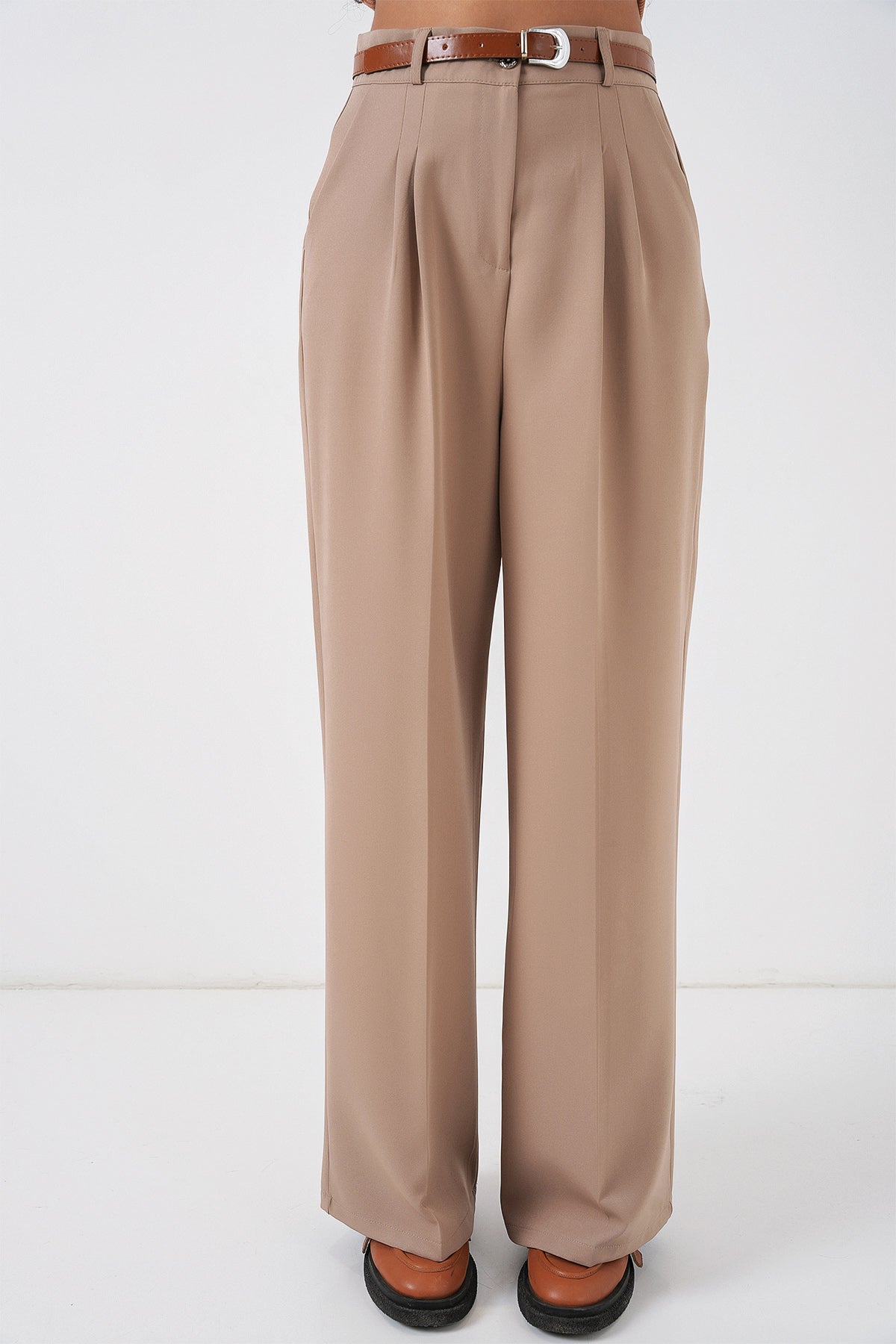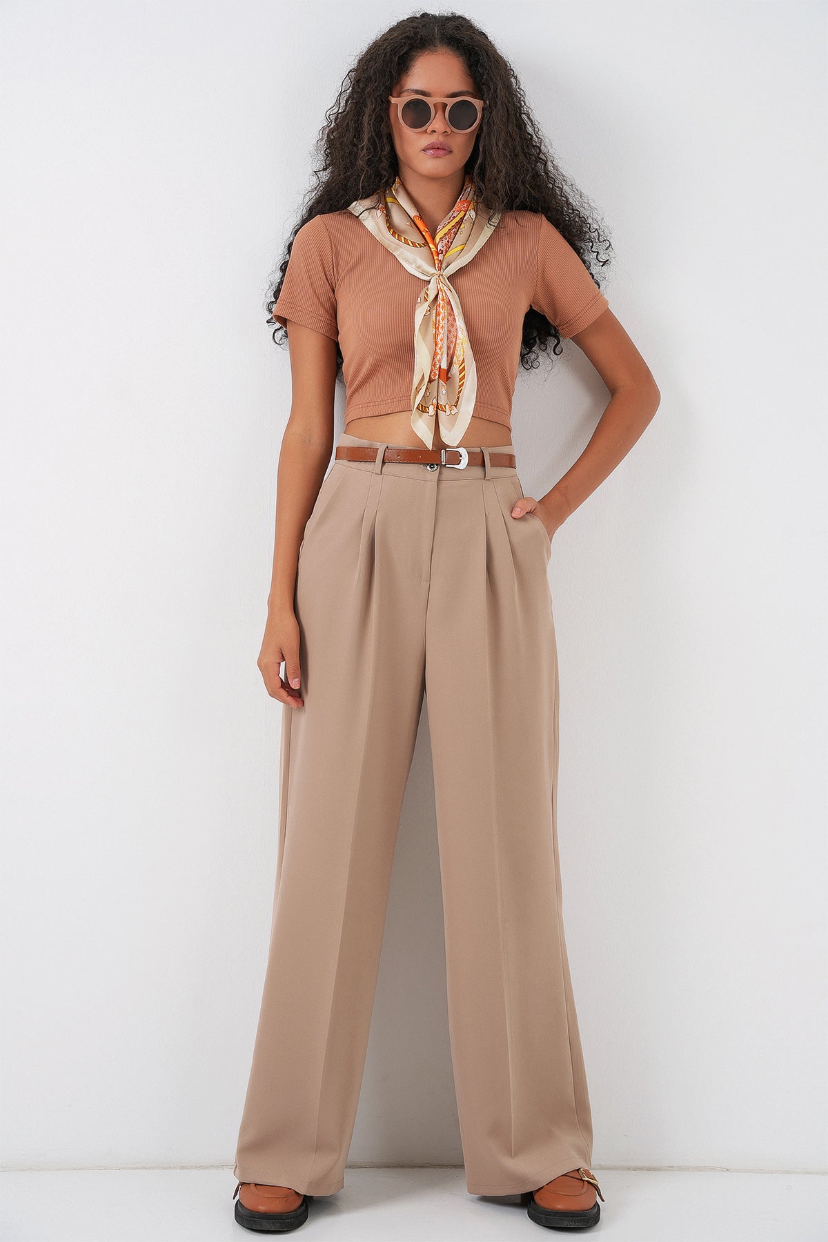 BGD Women Women's High Waist Palazzo Pants 30051 - Beige - Stamford