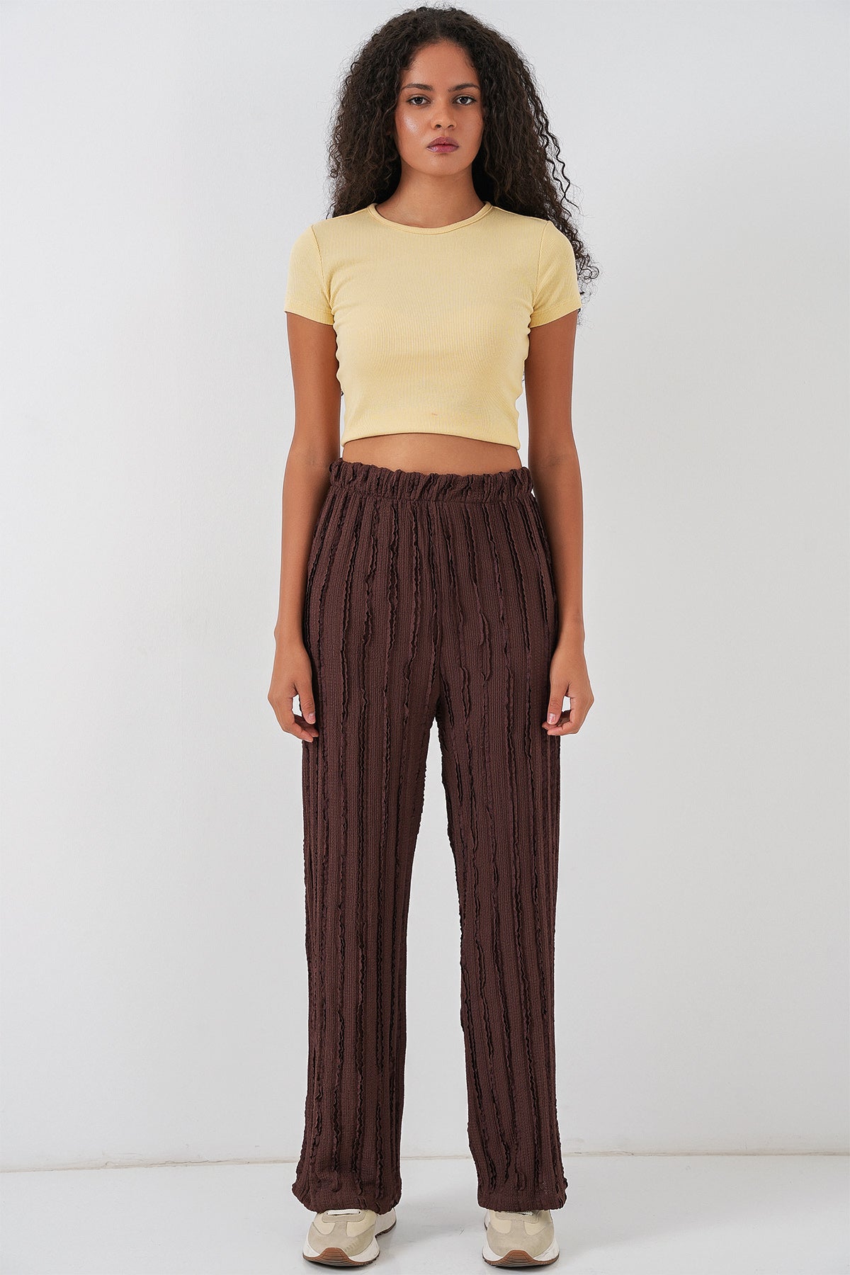 BGD Women Women's Textured Stretch Knit Pants 30057 - Brown - Apan