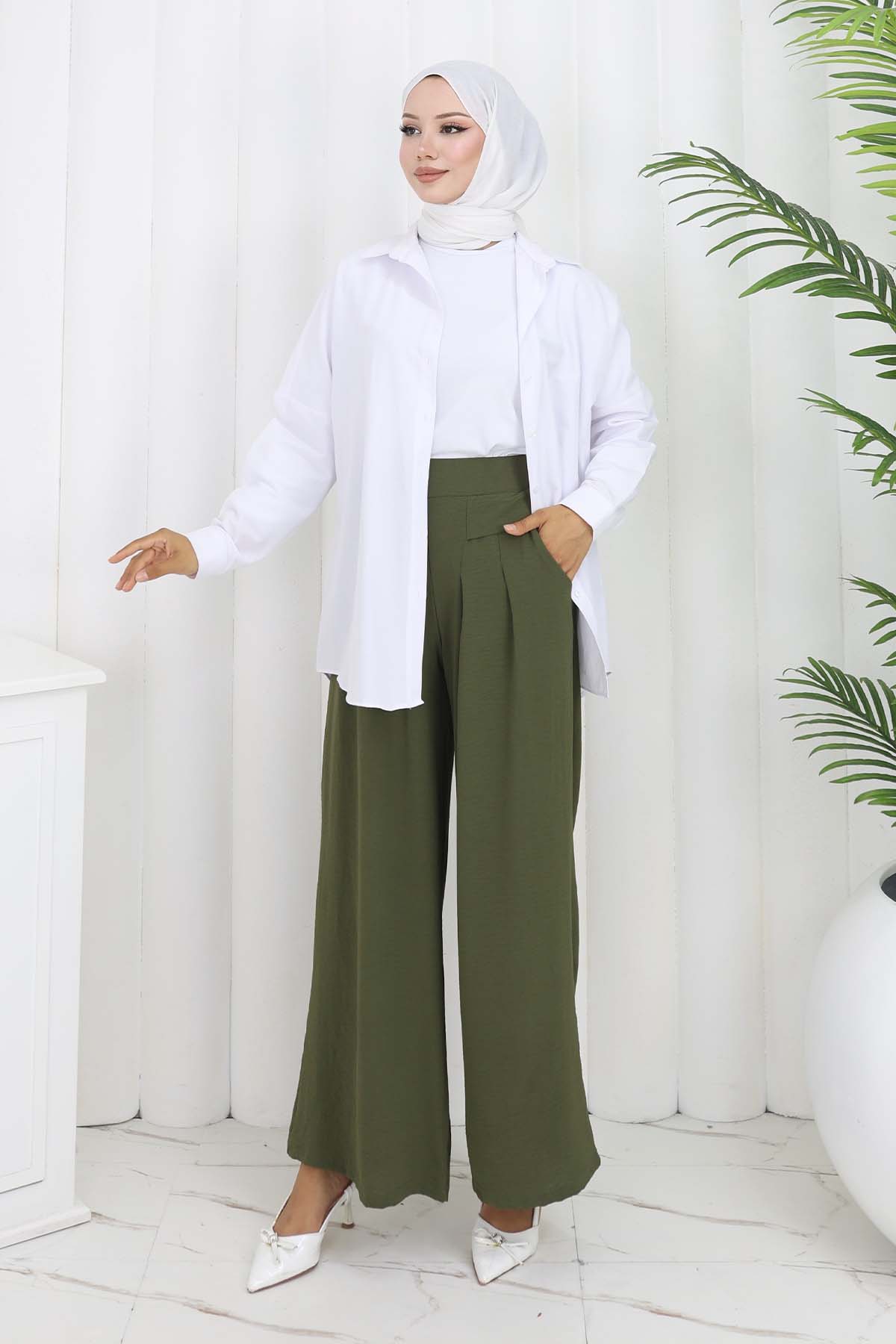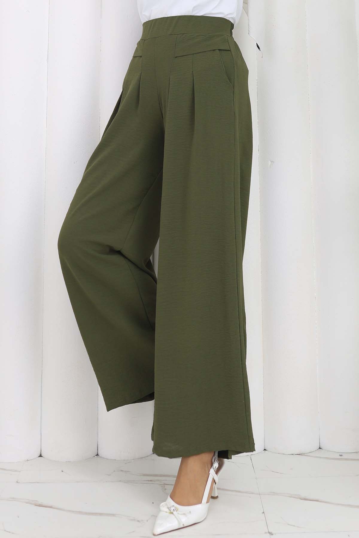 BNG Women Geniş Paça Pileli Pantolon Haki 6718 - Cuauhtémoc
