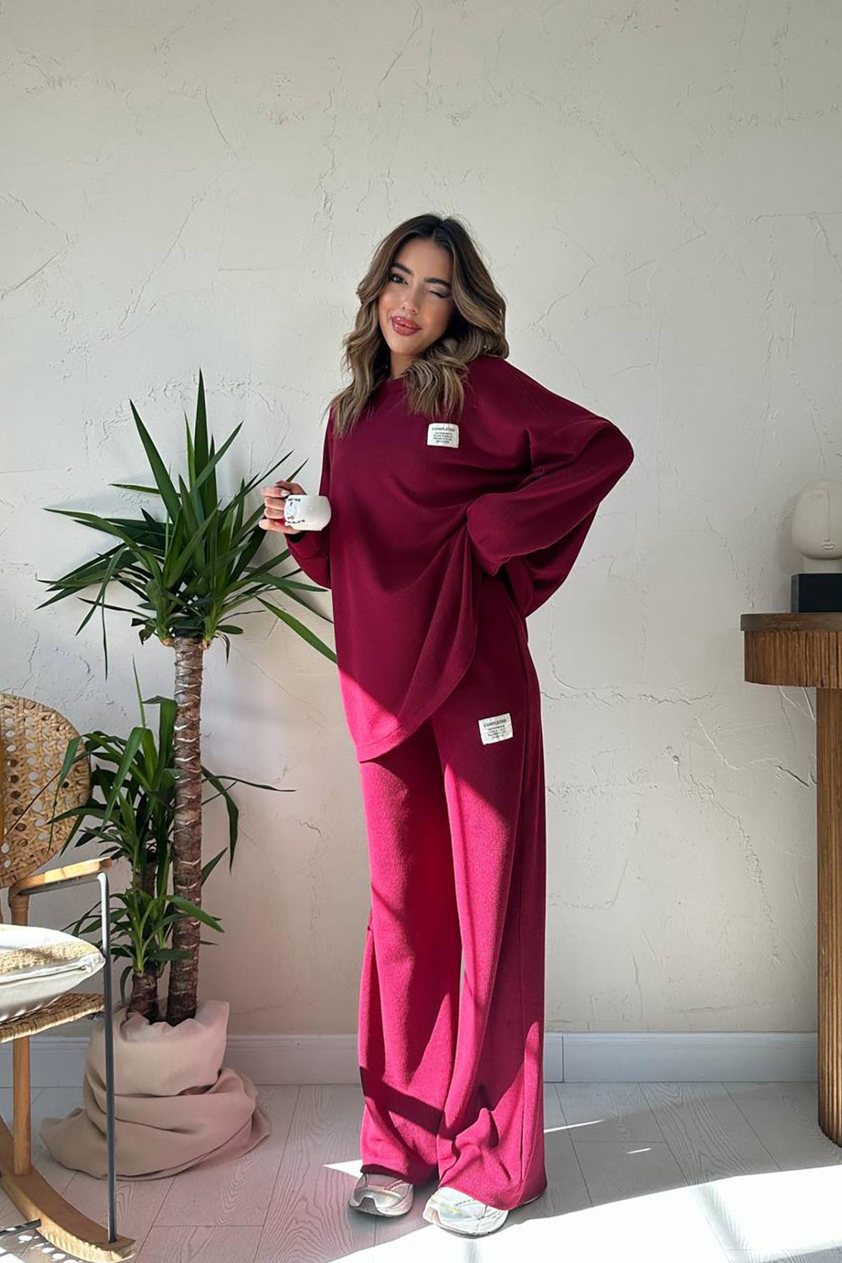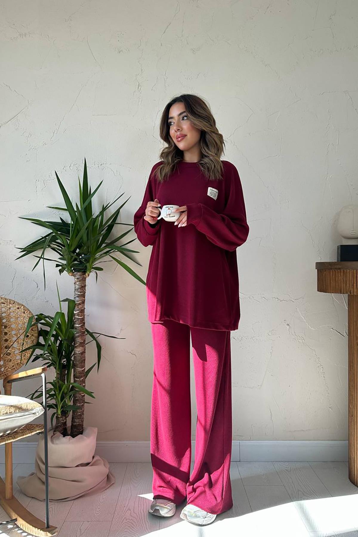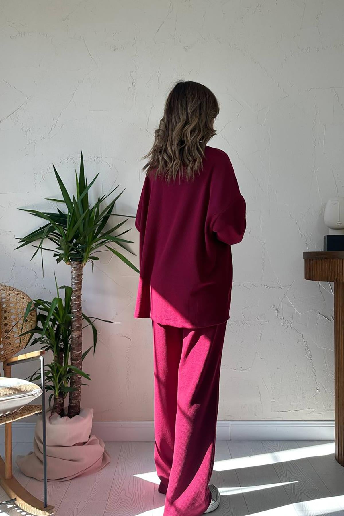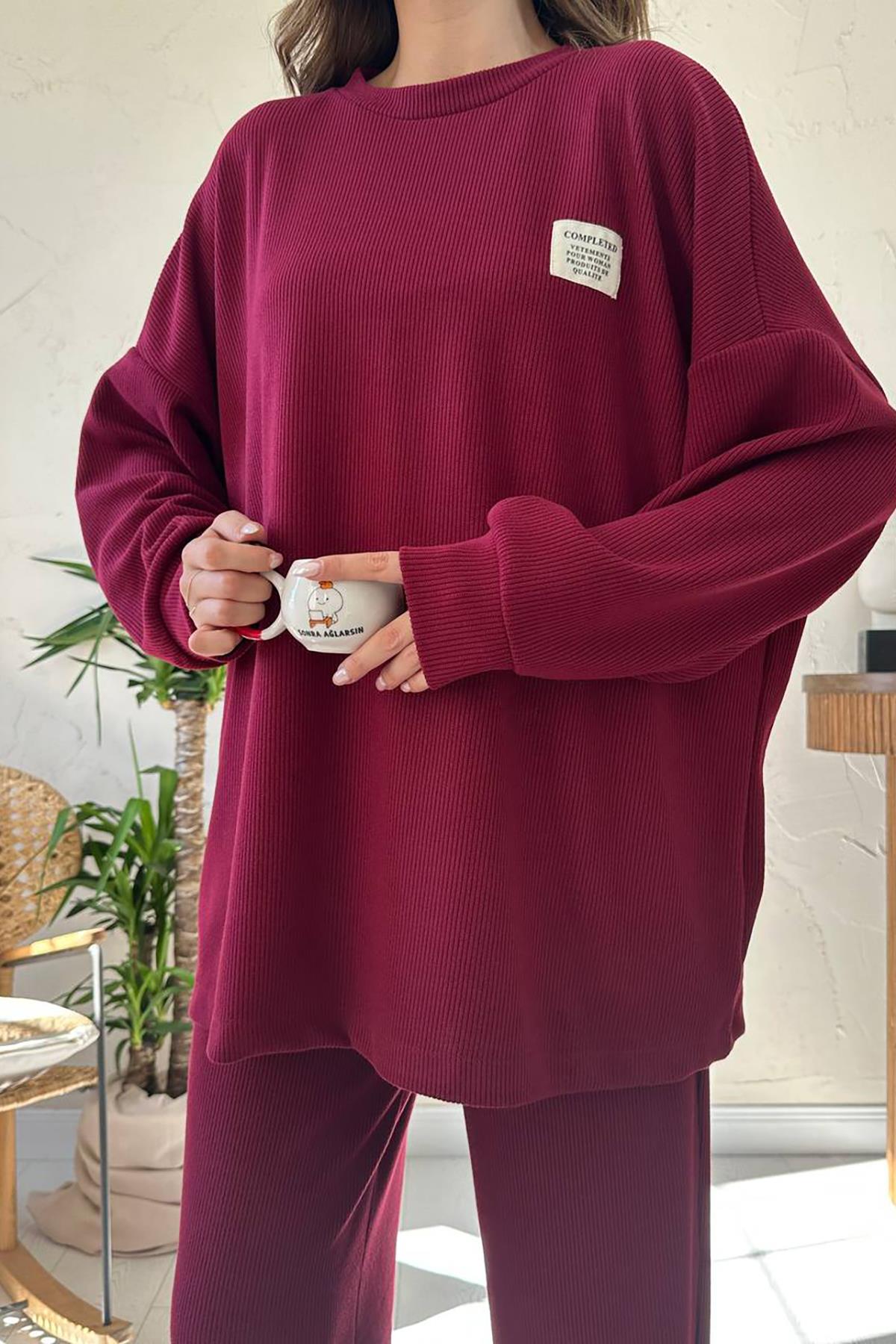 ELS Toptan Bordo Klasik Fitilli Kazak Ve Pantolon Takım - Orem