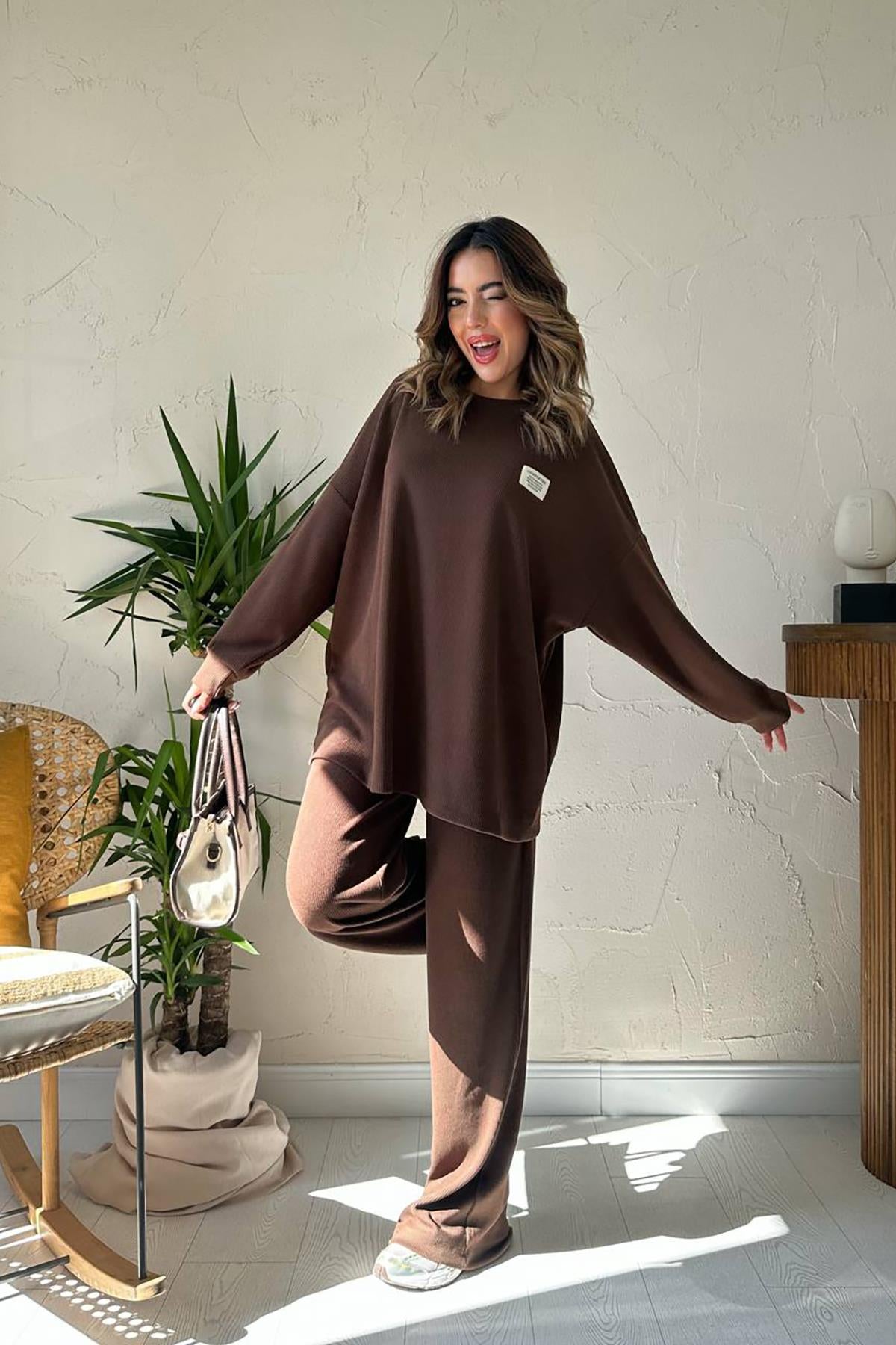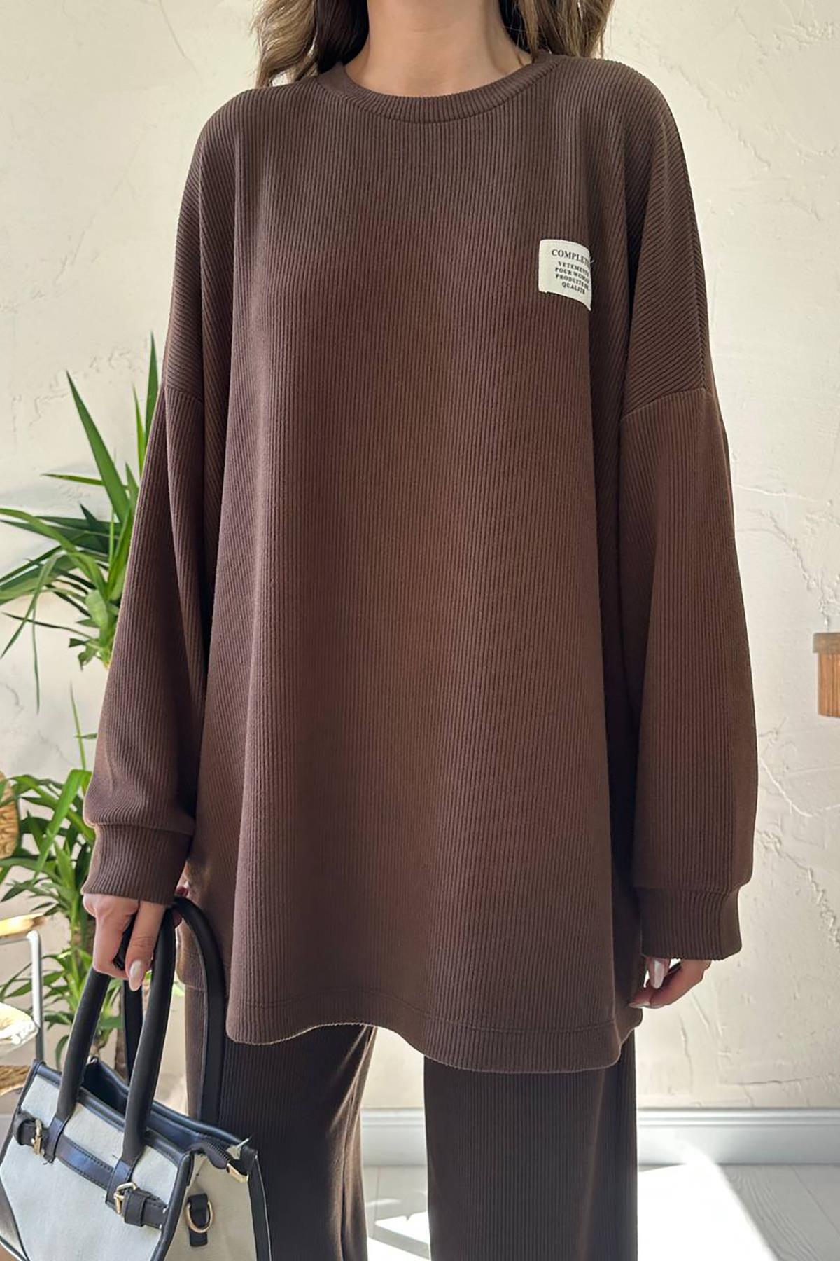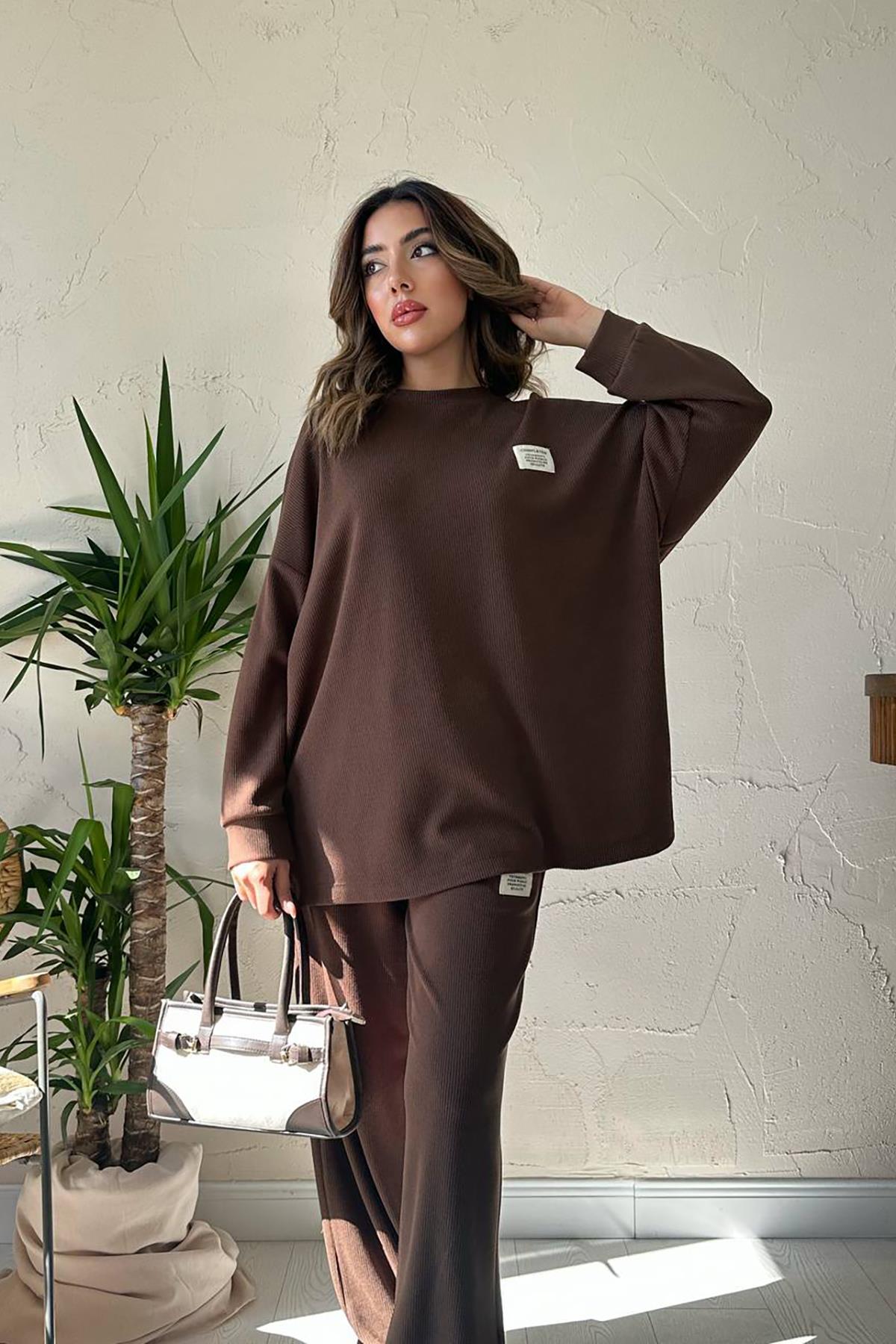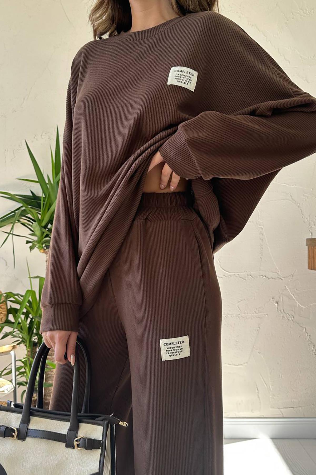 Toptan Kahverengi Klasik Fitilli Kazak ve Pantolon Takım