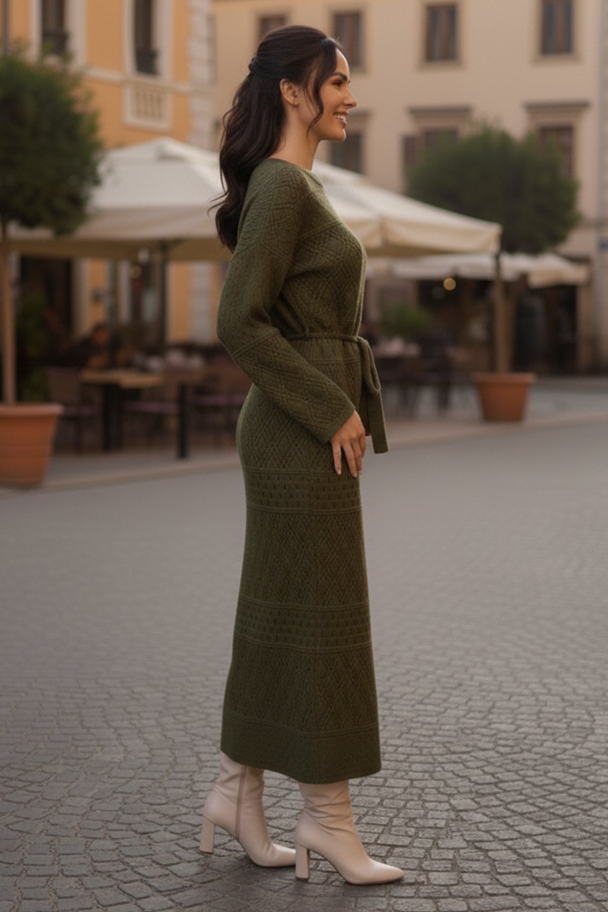 BNG Women Baklava Patterned Mesh Knit Dress R4454 Khaki - Herford