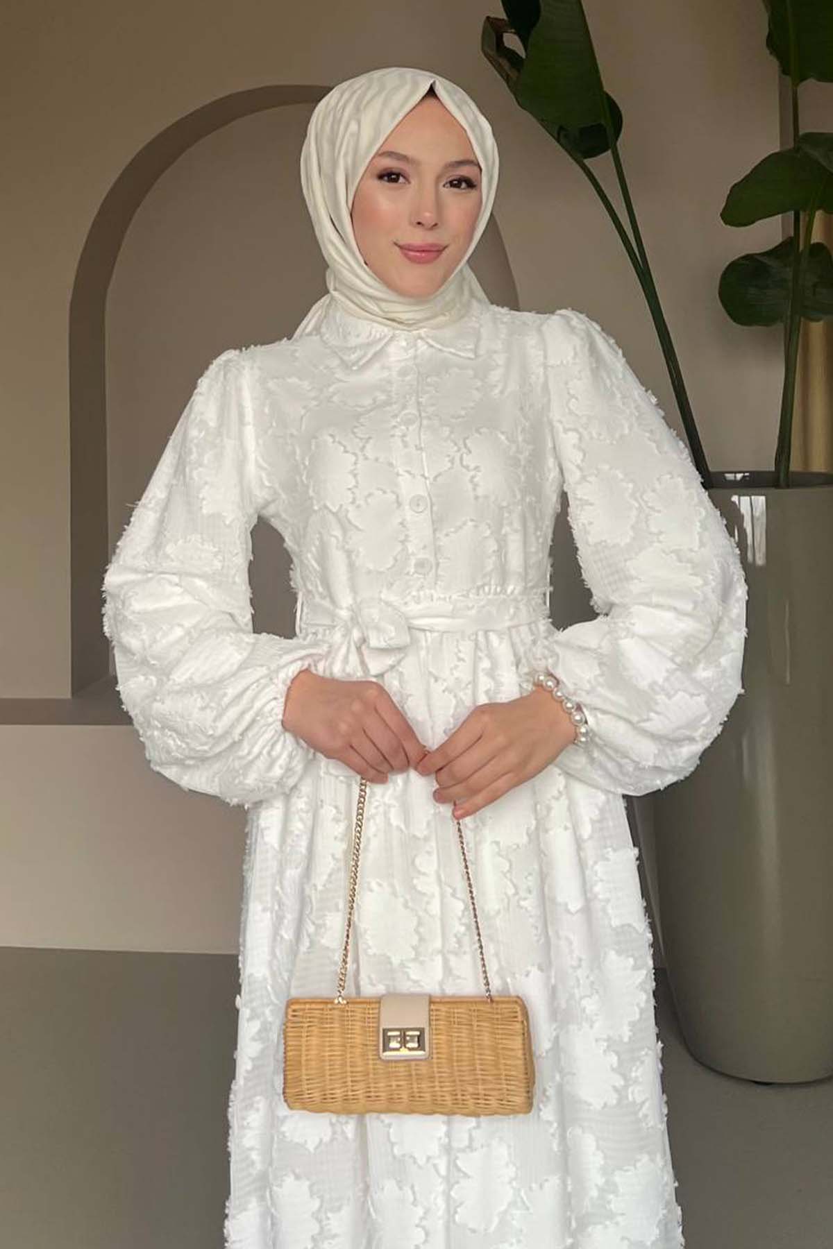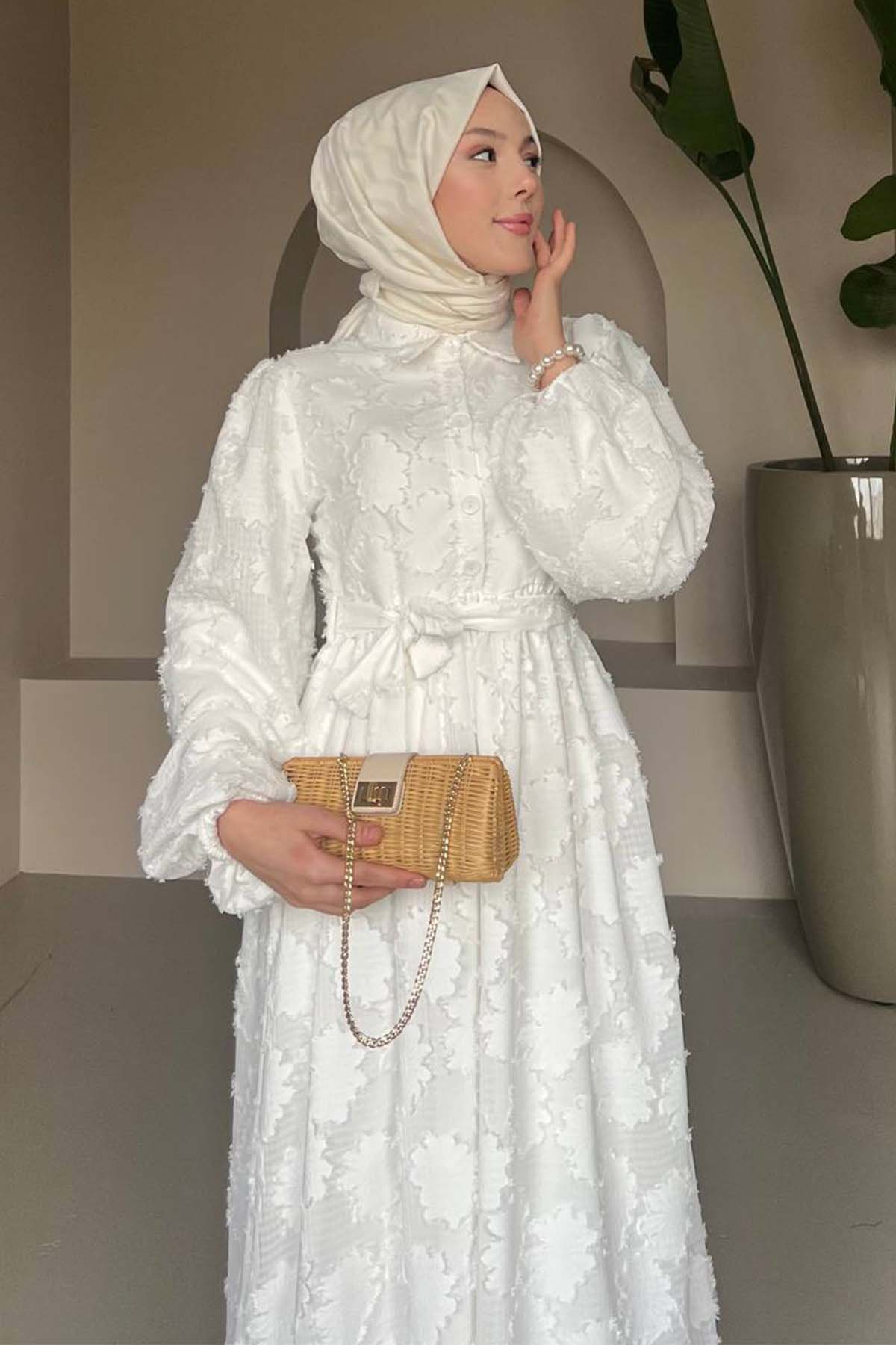 BNG Women Floral Pattern Chiffon Dress White 1006 - Pesquería