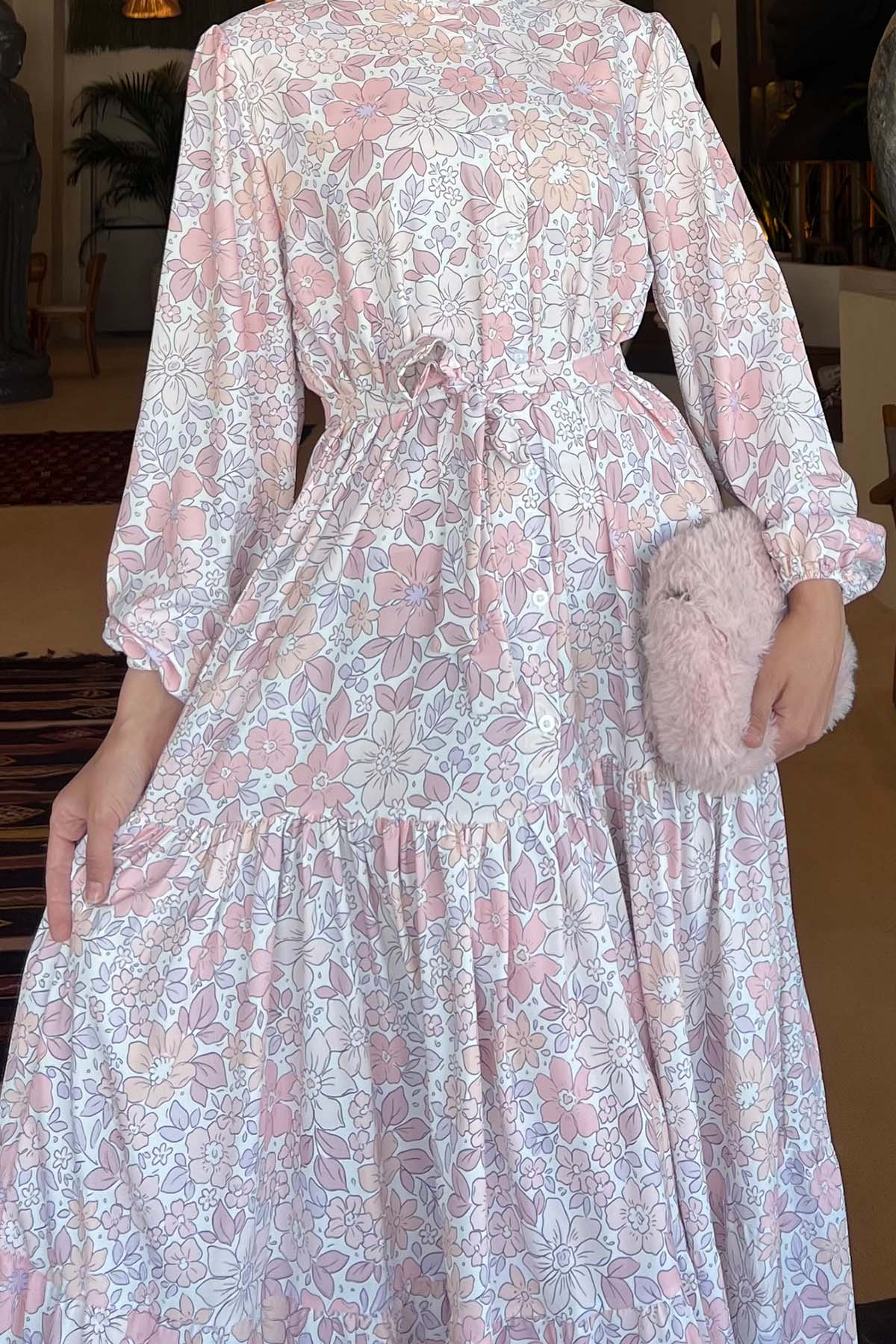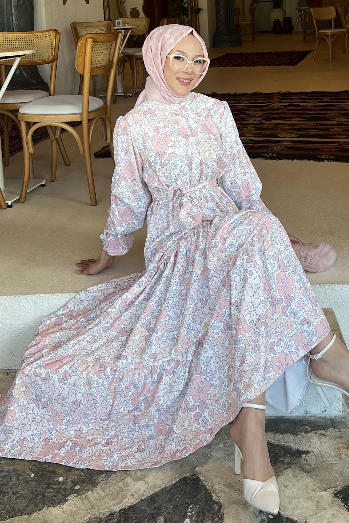 BNG Women Floral Patterned Hijab Dress Powder 502 - Gloucester