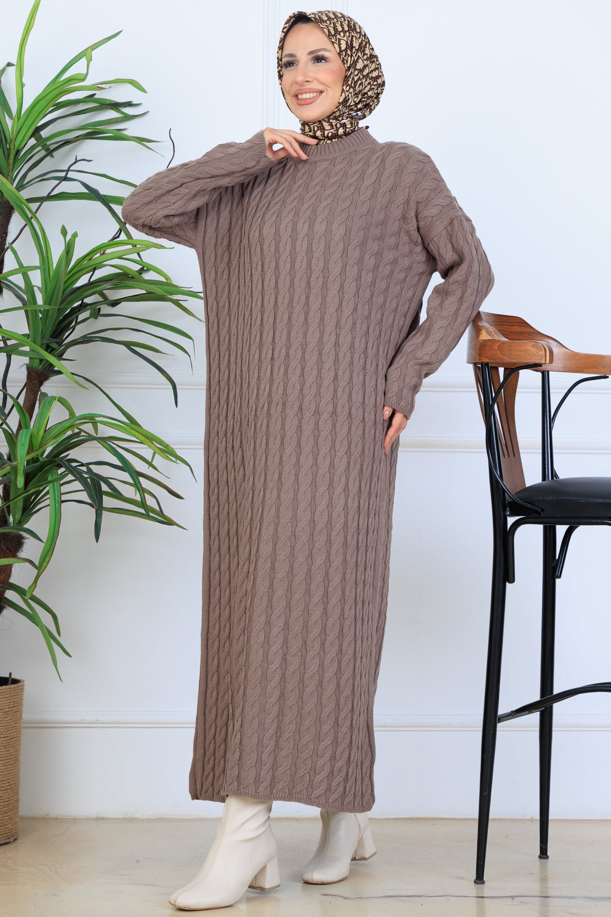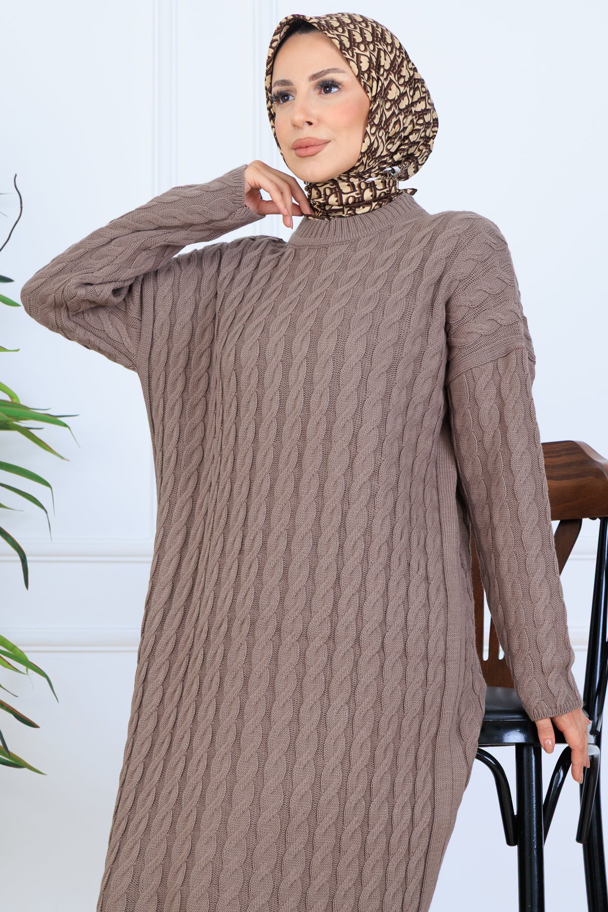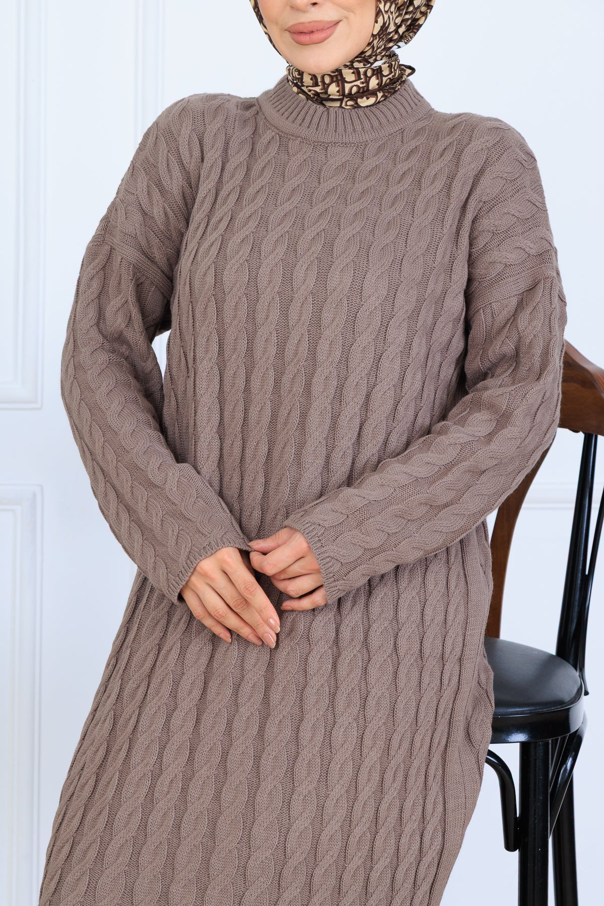 BNG Women Knitted Patterned Sweater Dress N7082 Mink - Mainz