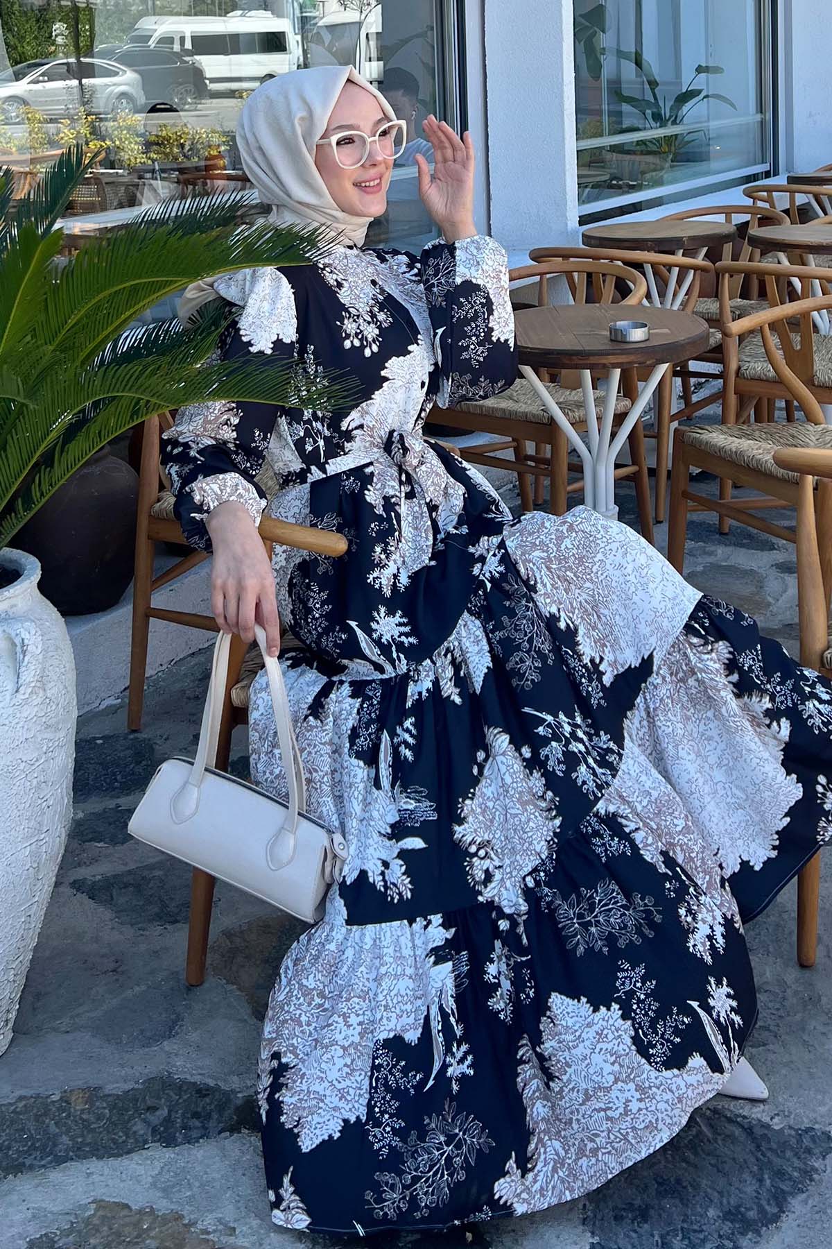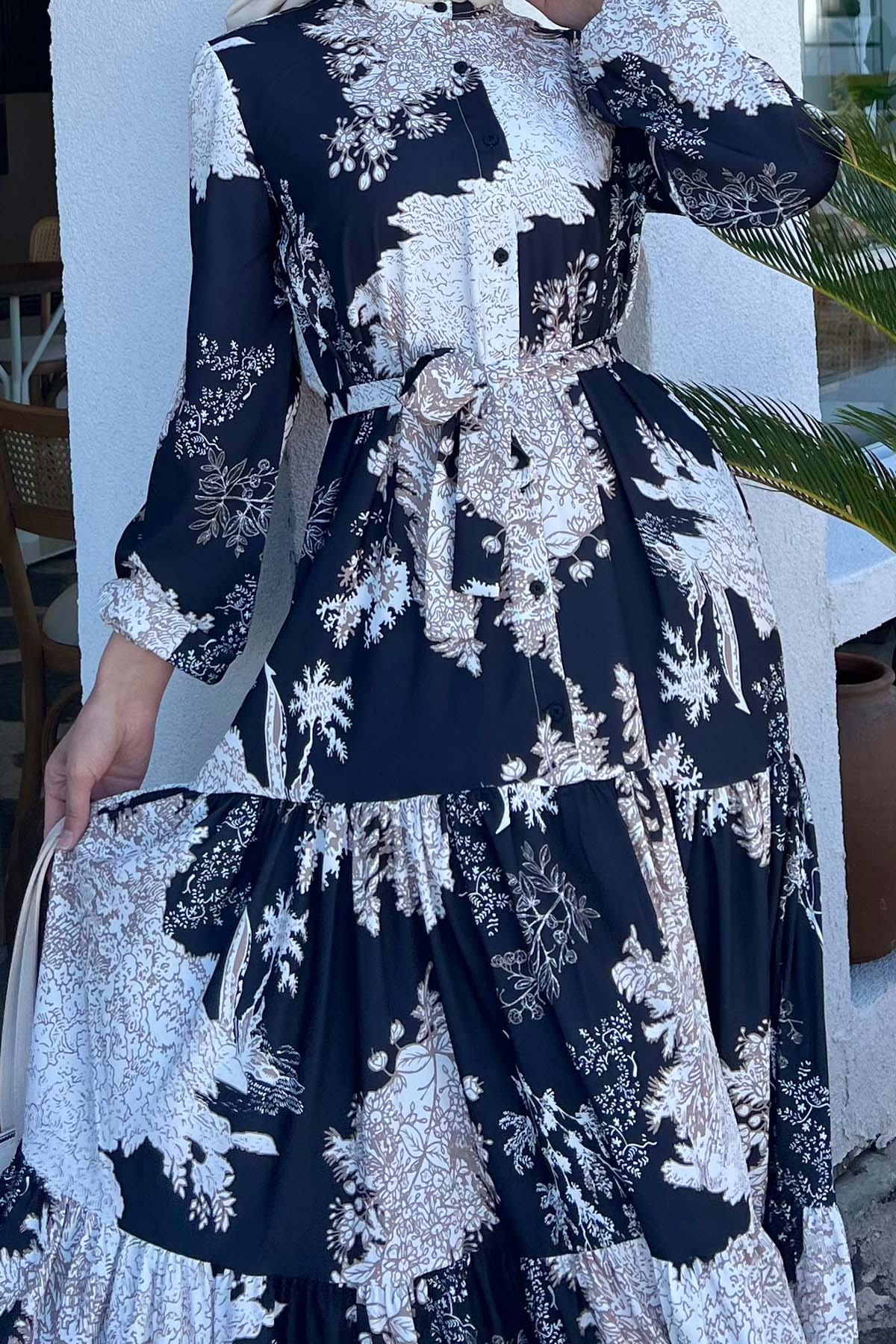 BNG Women Patterned Hijab Dress Black 508 - Catonsville