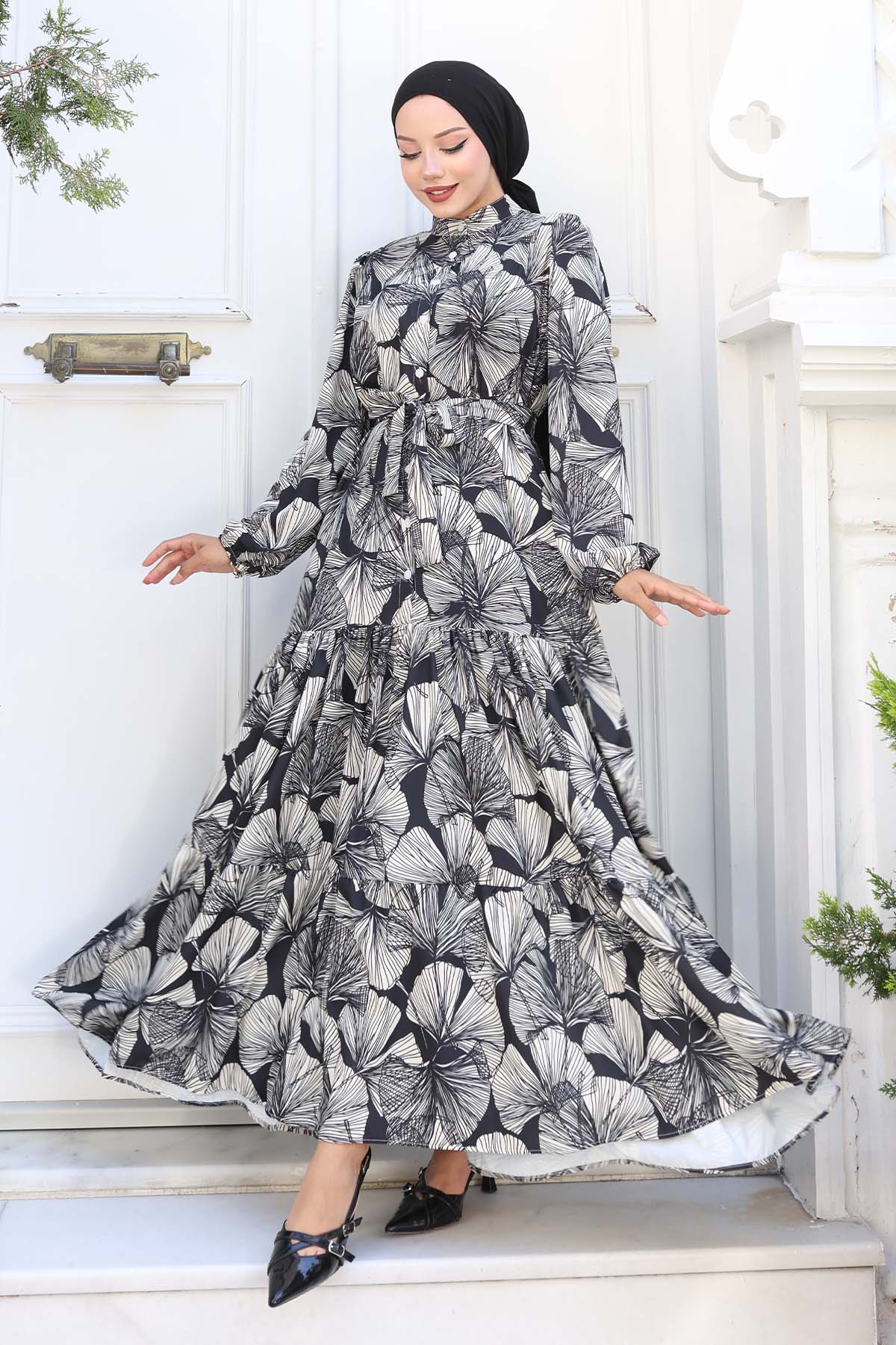 BNG Women Patterned Hijab Dress Black 559 - Puerto Peñasco
