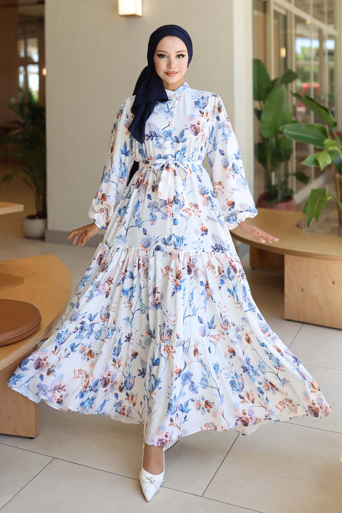 BNG Women Patterned Hijab Dress Blue 563 - Elizabethtown
