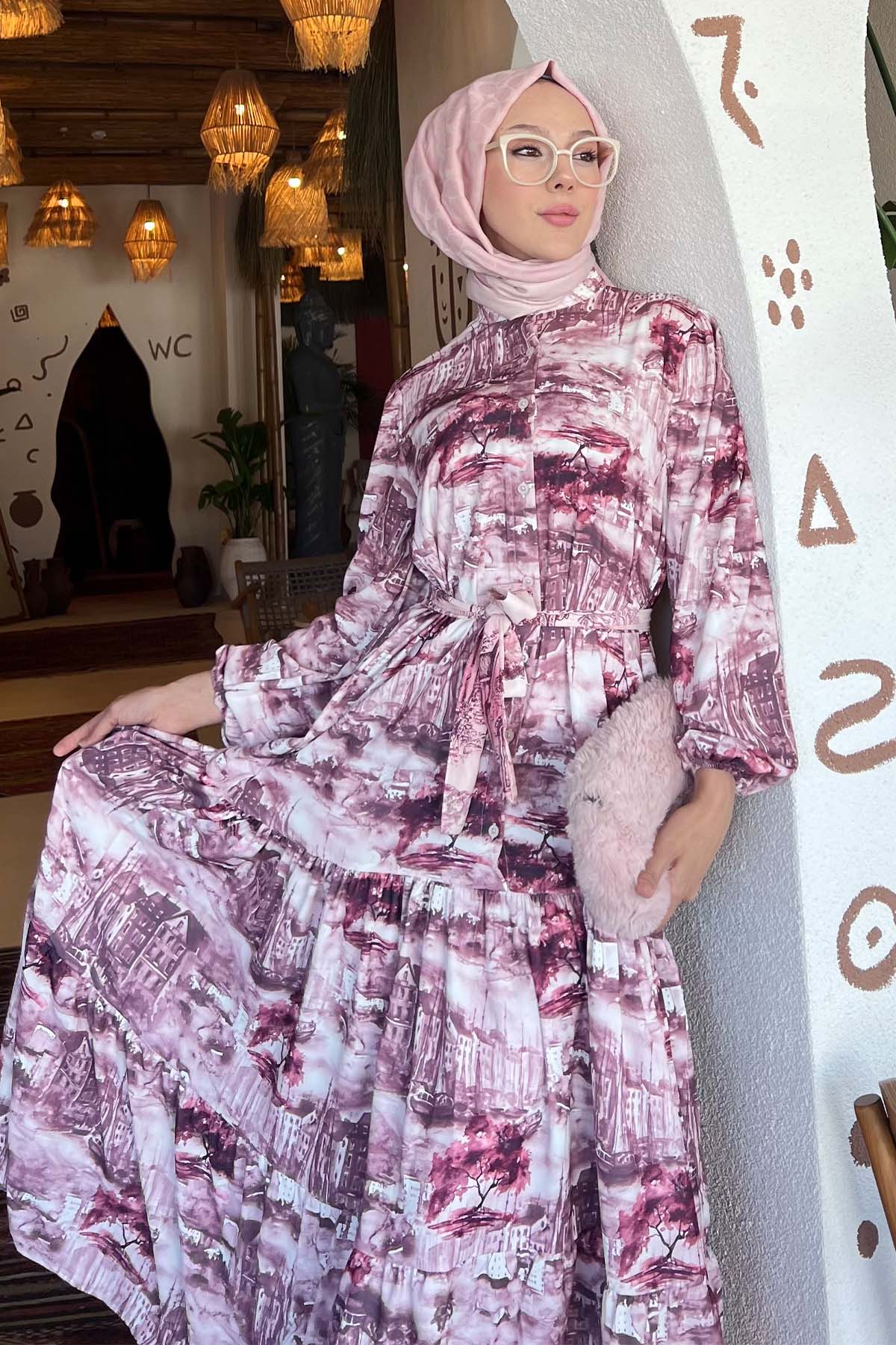 BNG Women Patterned Hijab Dress Burgundy 512 - College Station