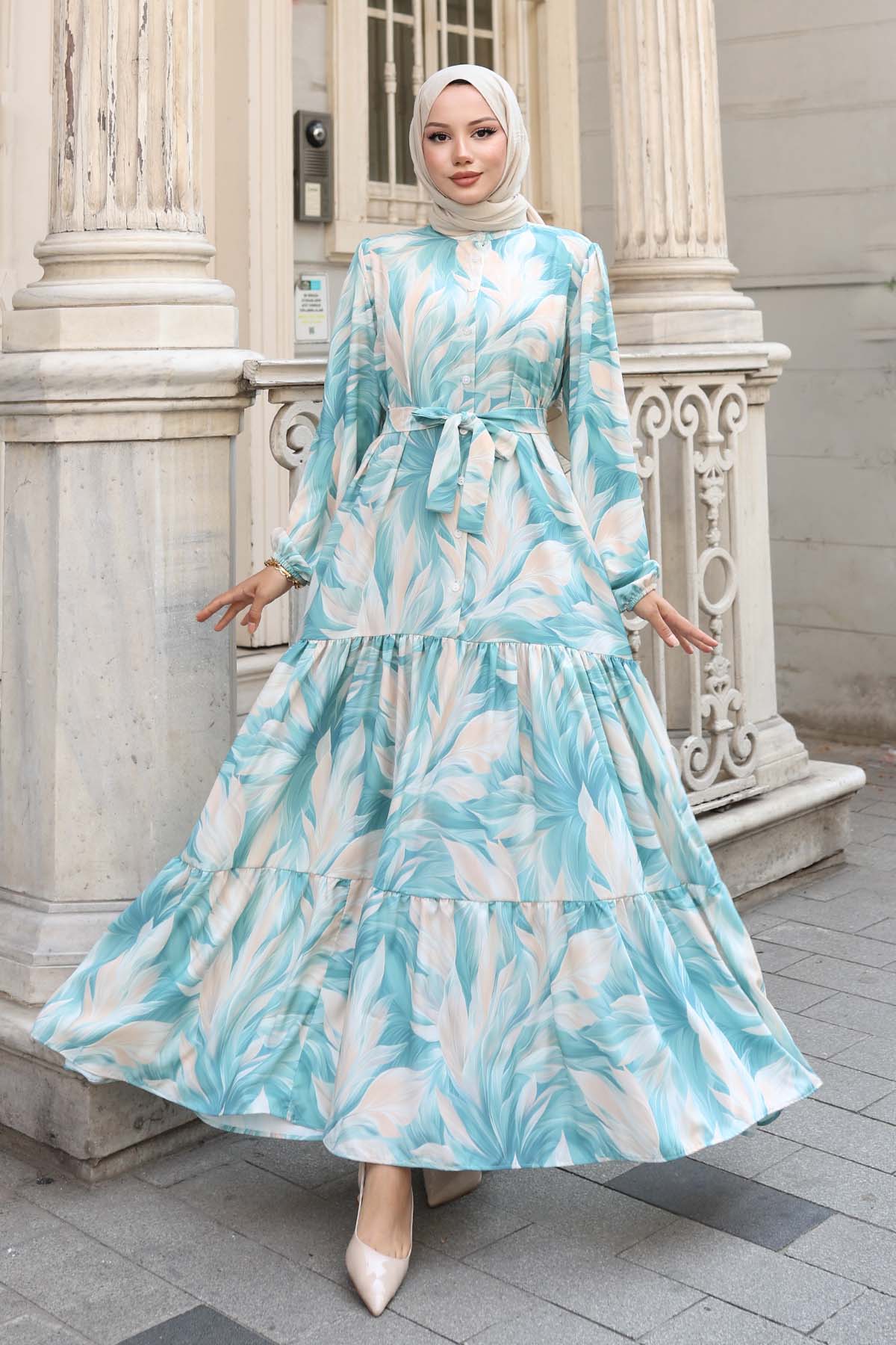 BNG Women Patterned Hijab Dress Çağla 528 - Nashua