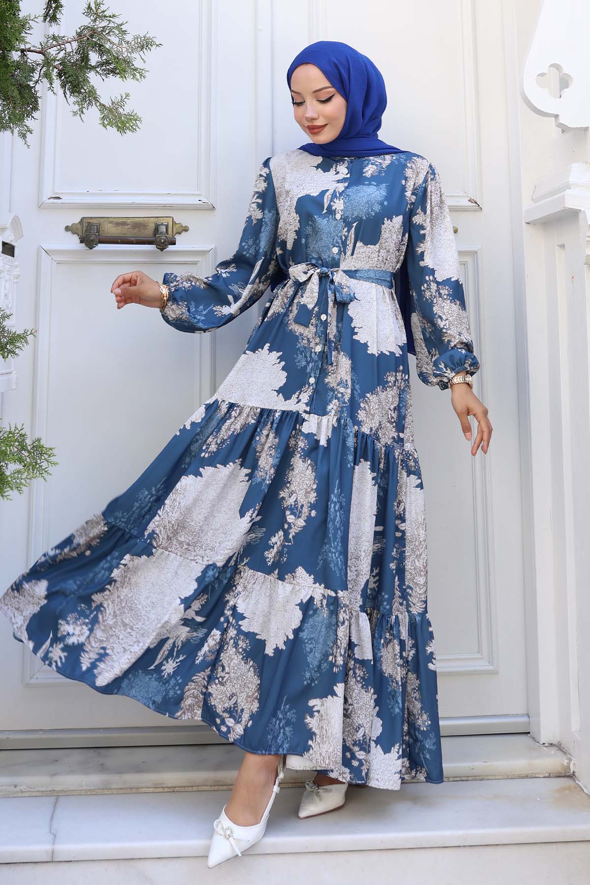 BNG Women Patterned Hijab Dress Indigo 508 - Langford Station