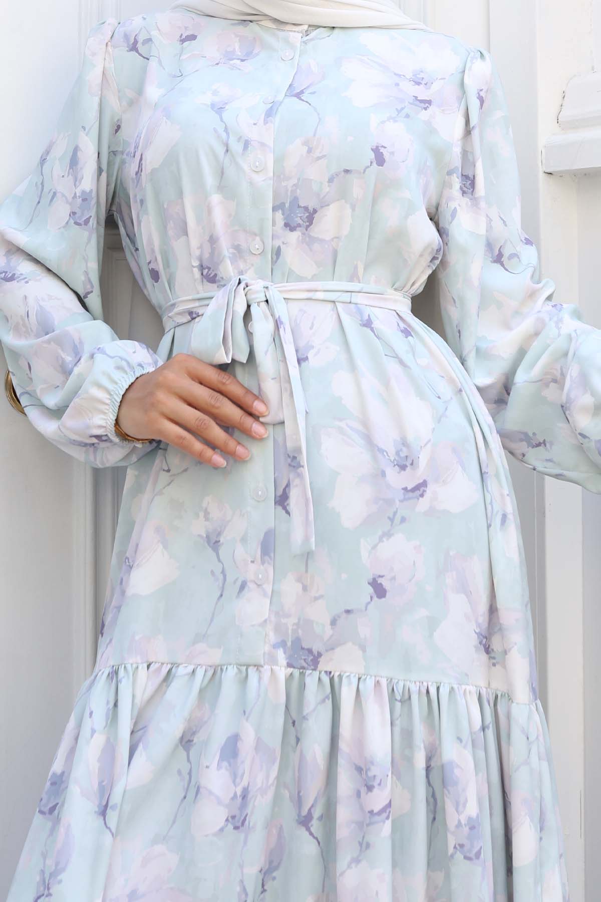 BNG Women Patterned Hijab Dress Mint Green 550 - Carmel
