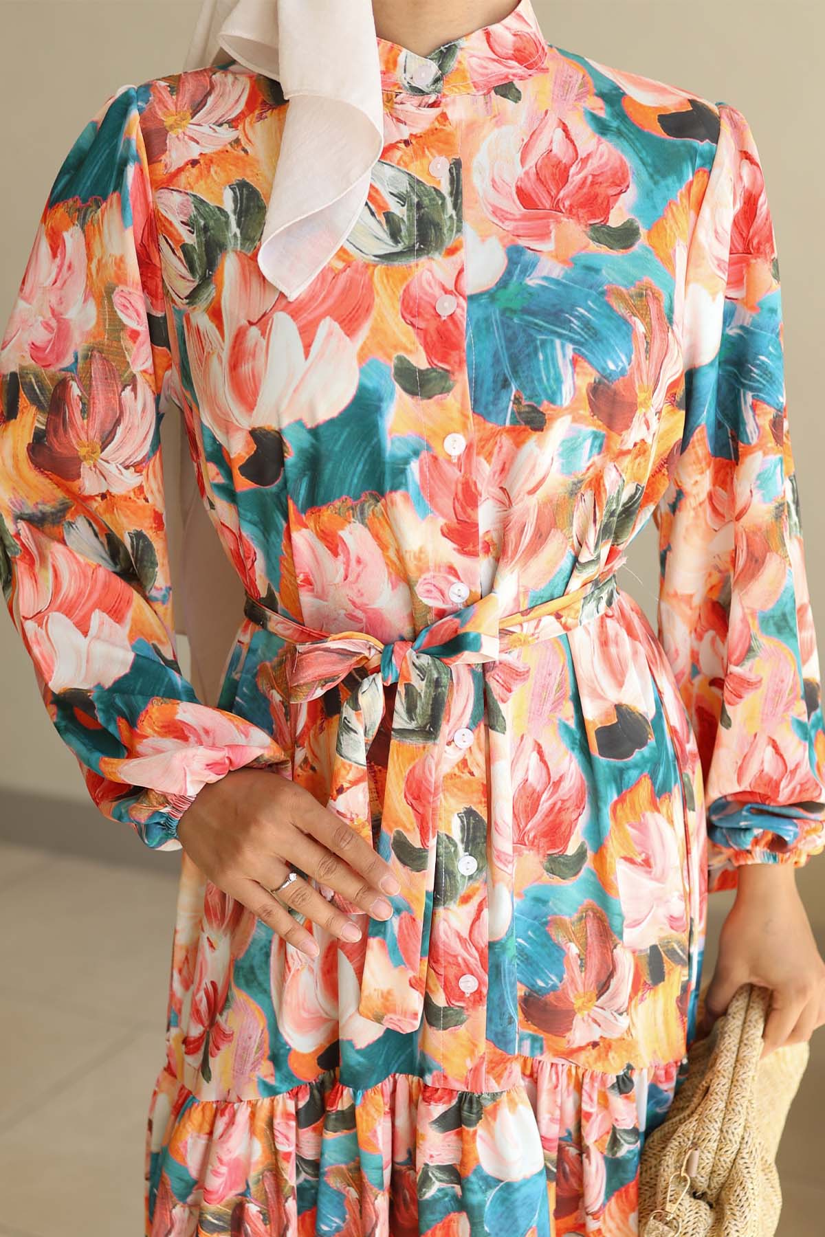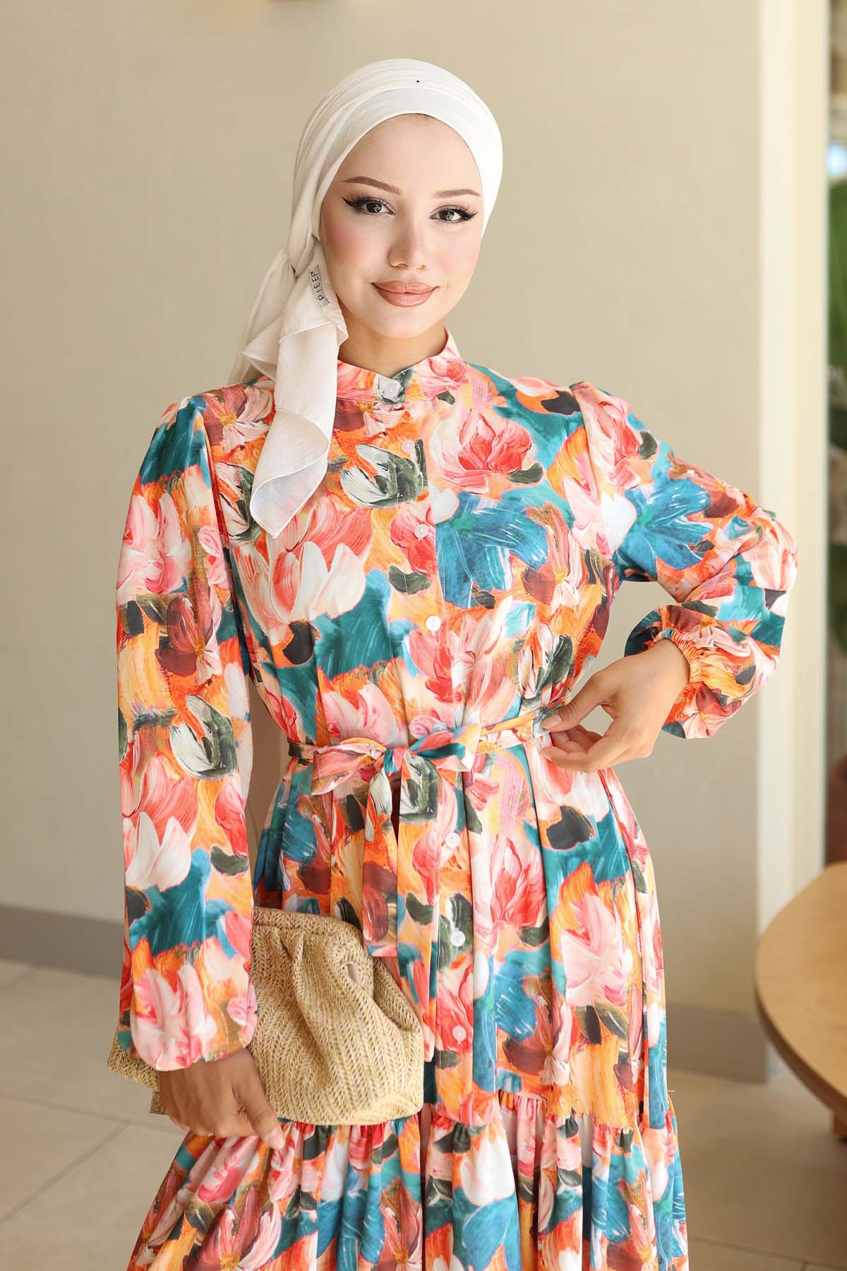 BNG Women Patterned Hijab Dress Orange 564 - Baton Rouge
