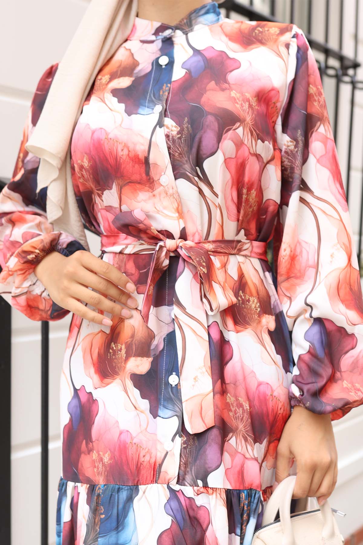 BNG Women Patterned Hijab Dress Salmon 578 - Kremenchuk