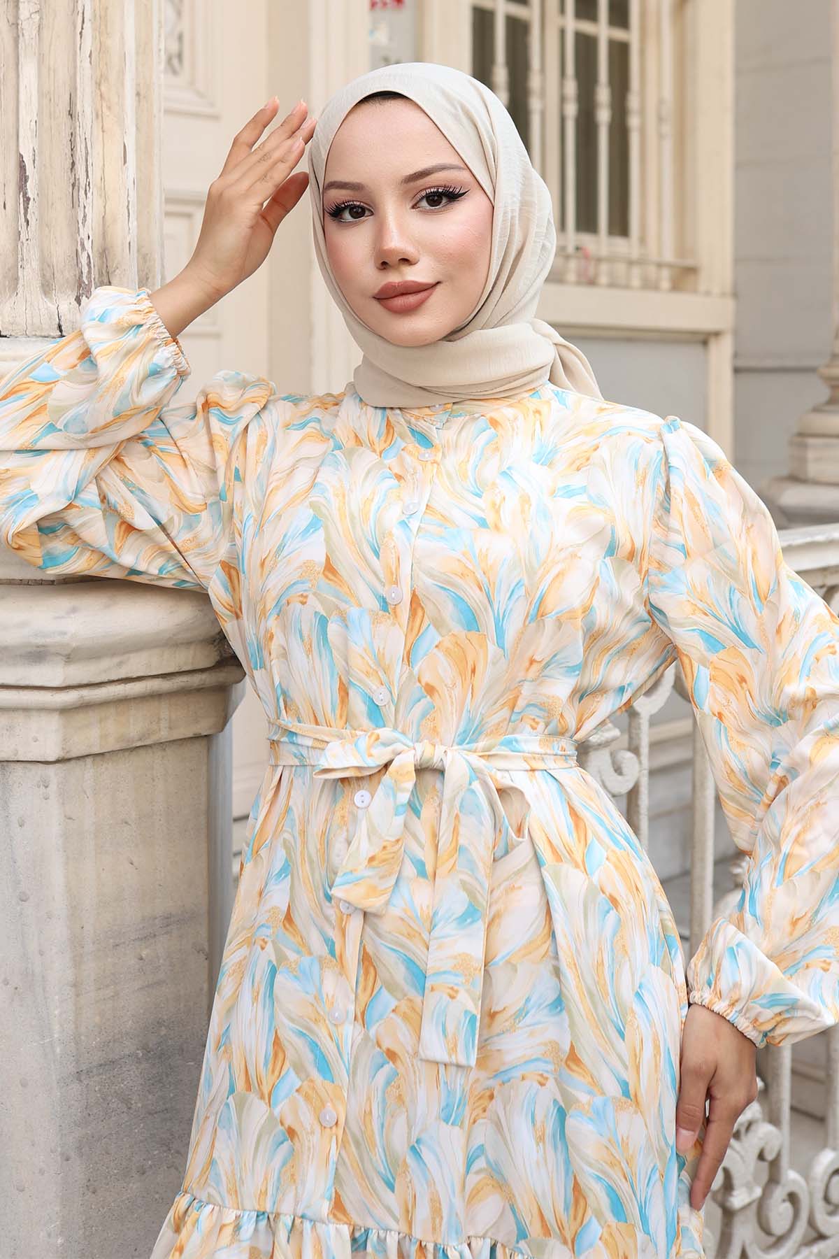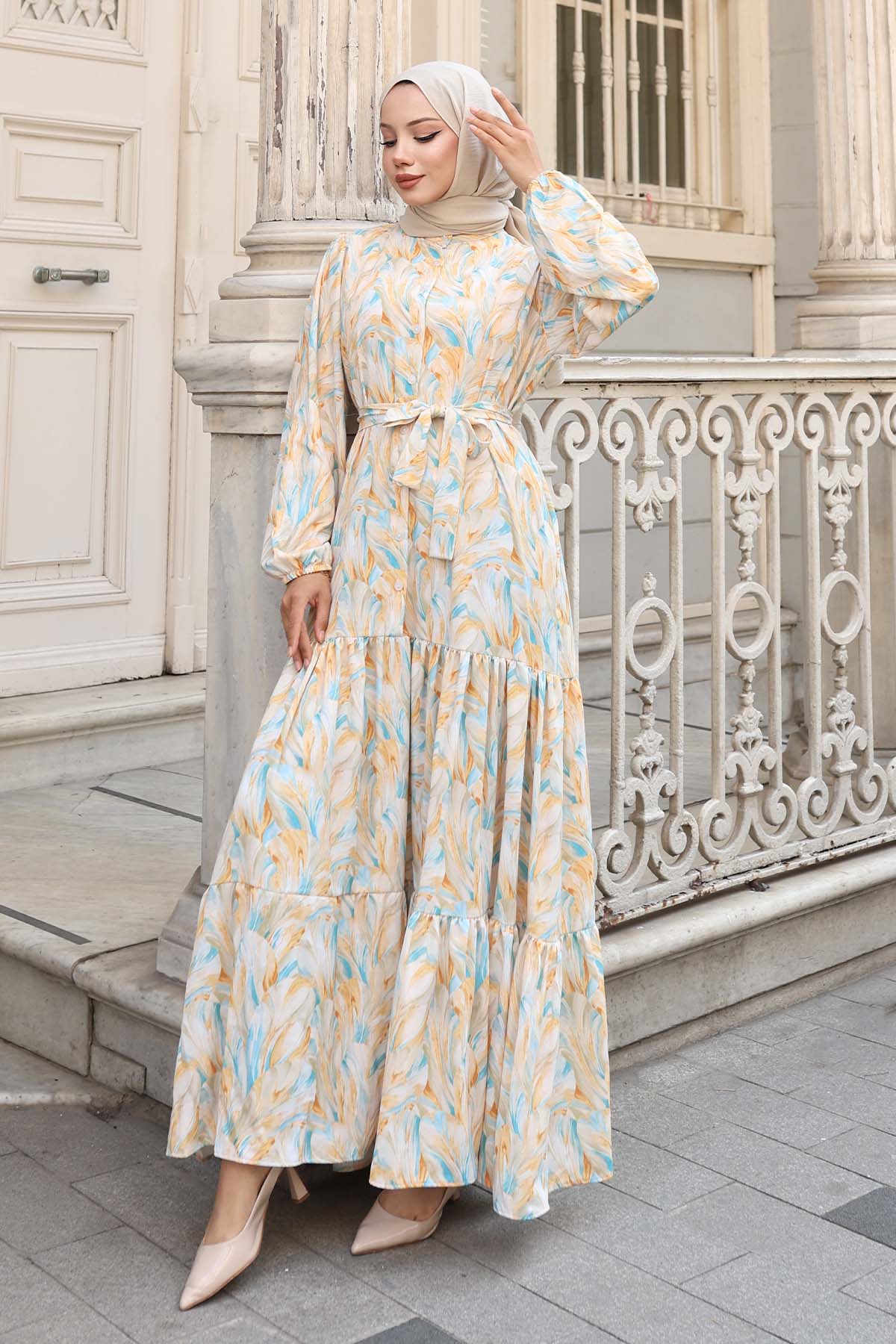 BNG Women Patterned Hijab Dress Yellow 538 - Panevėžys