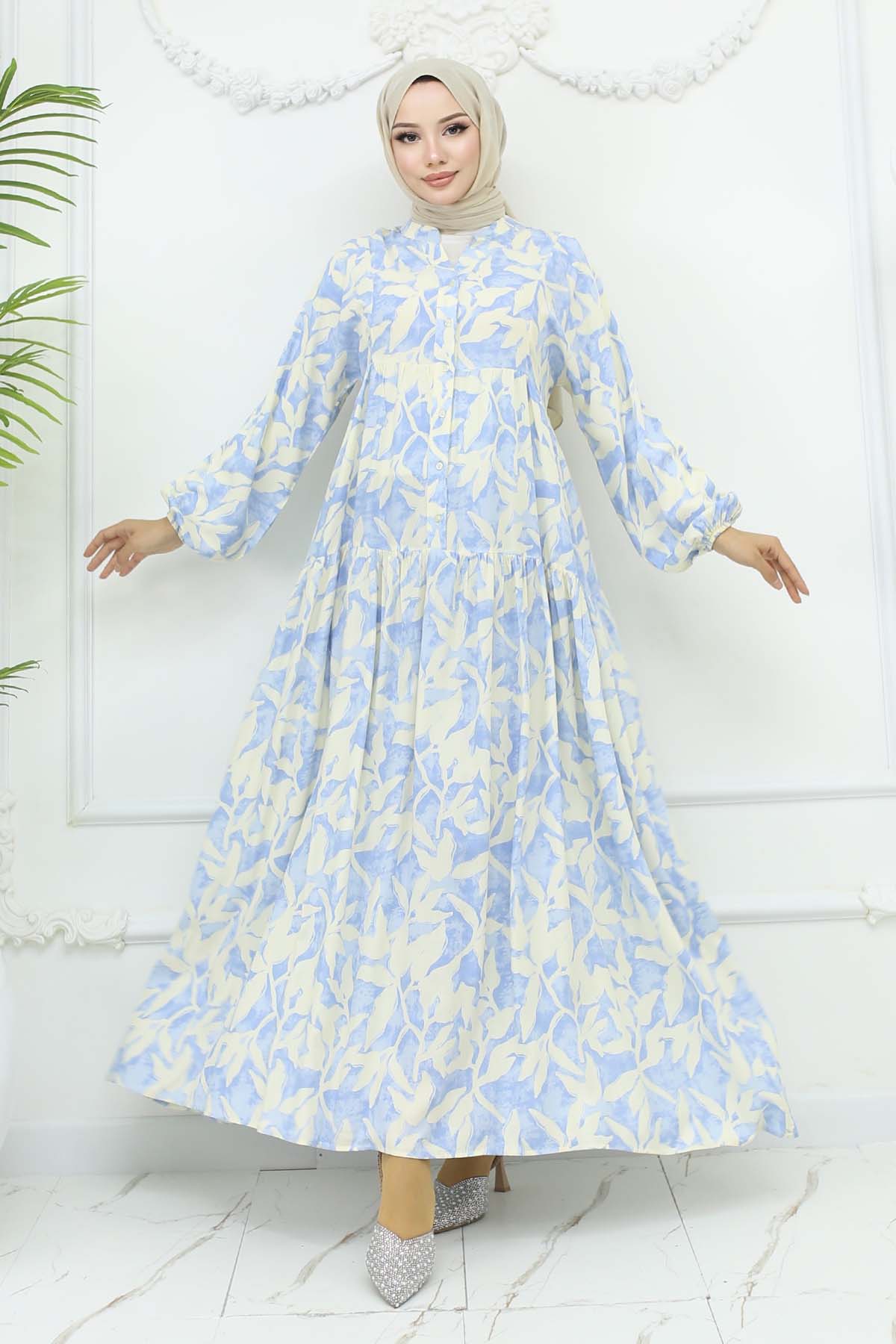 BNG Women Patterned Viscose Dress Blue 2424 - Seevetal