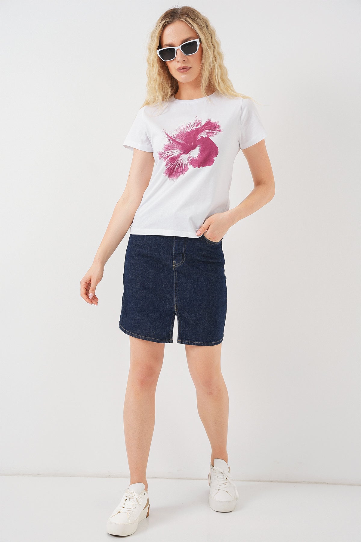 BGD Women Women's Printed Basic T-shirt 4349 - Purple - Mountain View