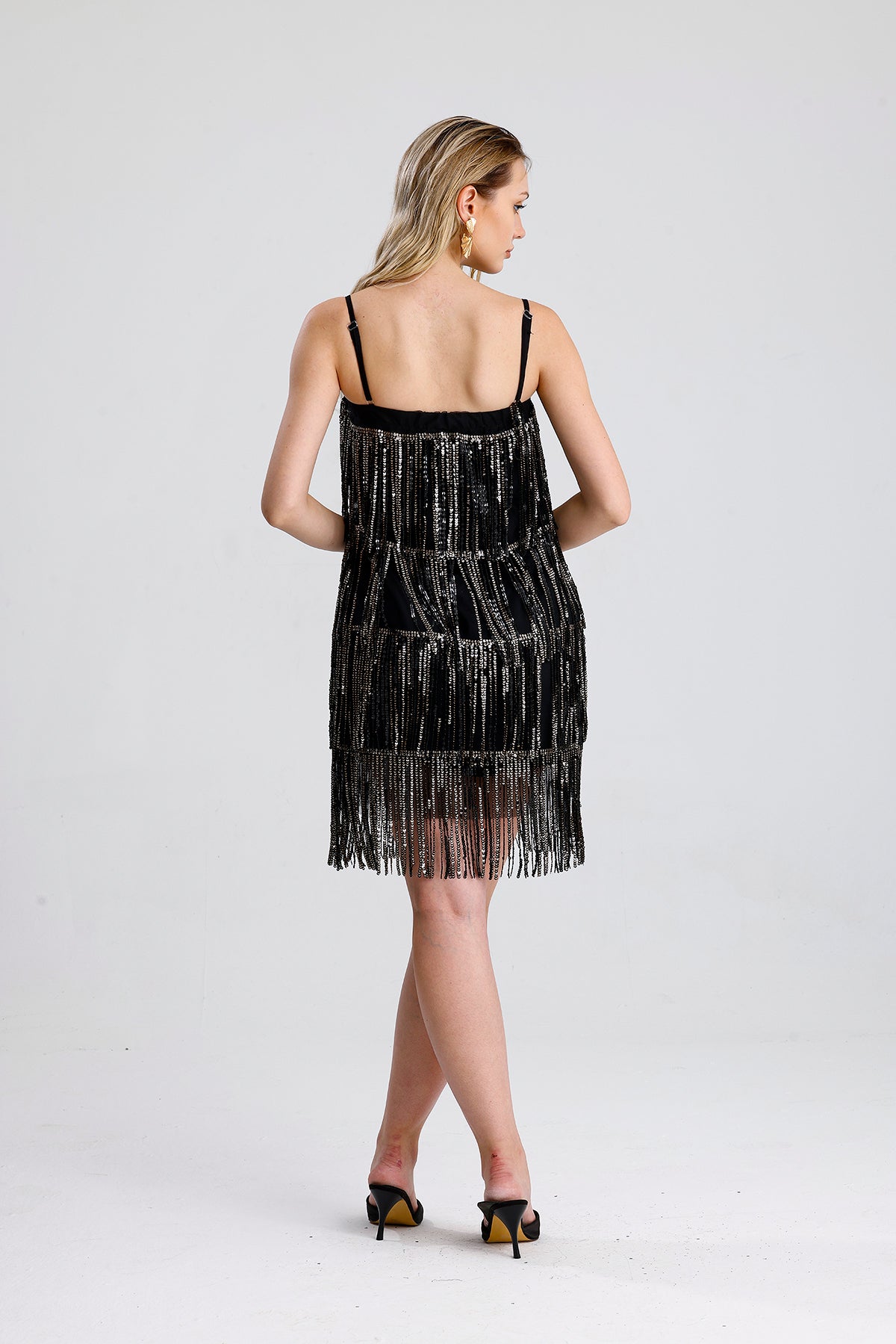 SNS Black-Gold Embroidered Tulle Dress with Sequin Detail - Bell Gardens