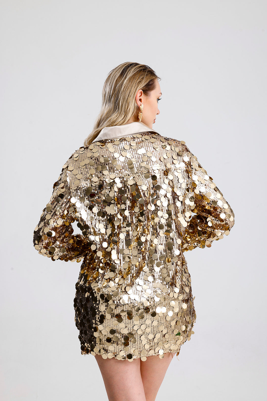 SNS Sense Gold Satin Embellished Sequin Detailed Tuxedo Shirt - Westminster