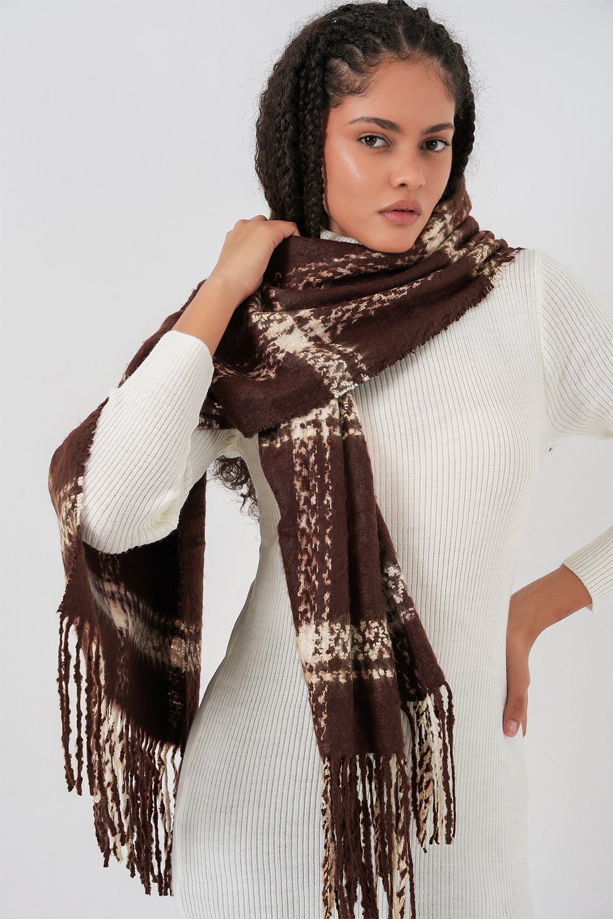 BGD Women Woman Soft Textured Thick Shawl Scarf 15951 - Brown - Novara