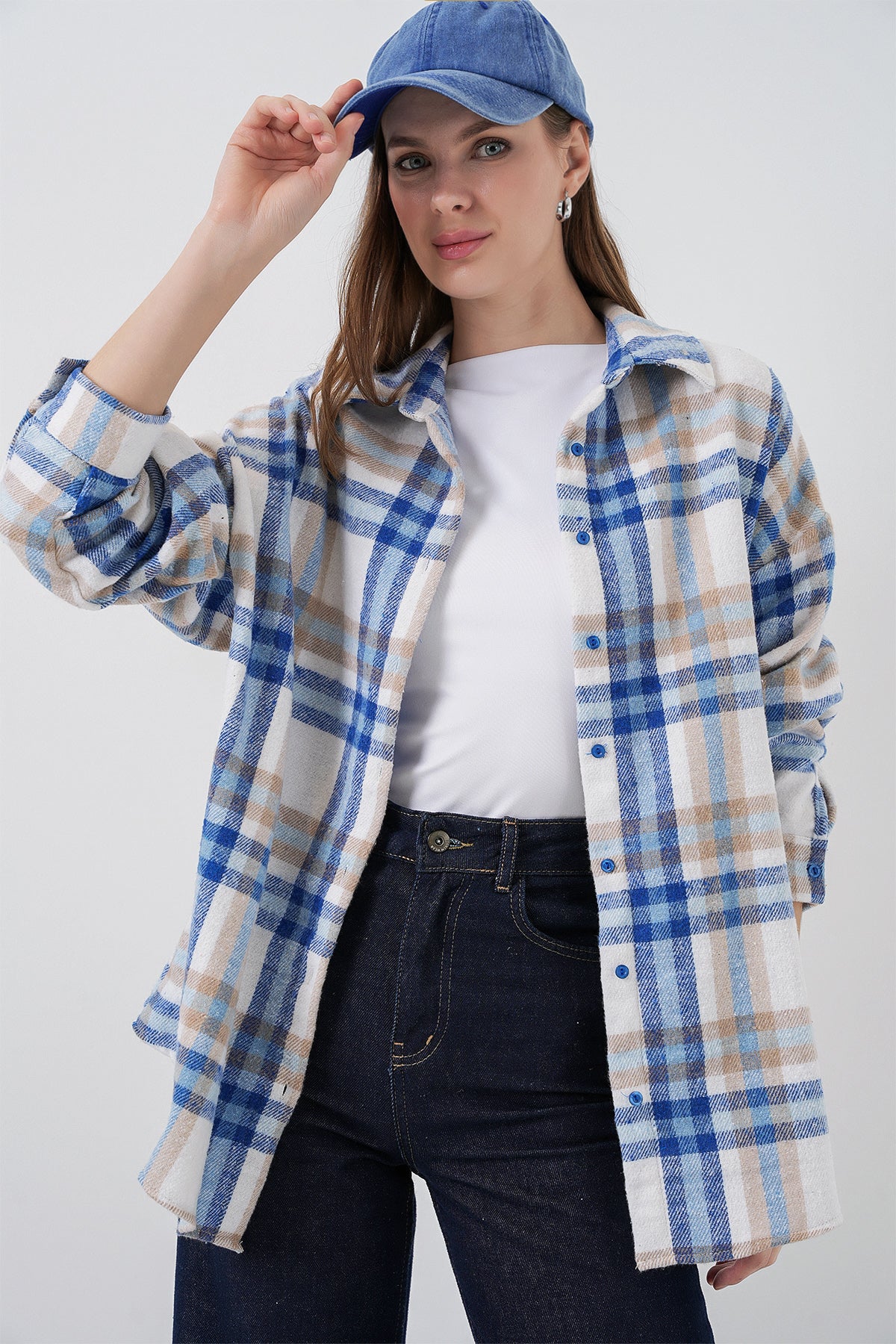 Women's Checkered Pattern Buttoned Oversize Lumberjack Shirt