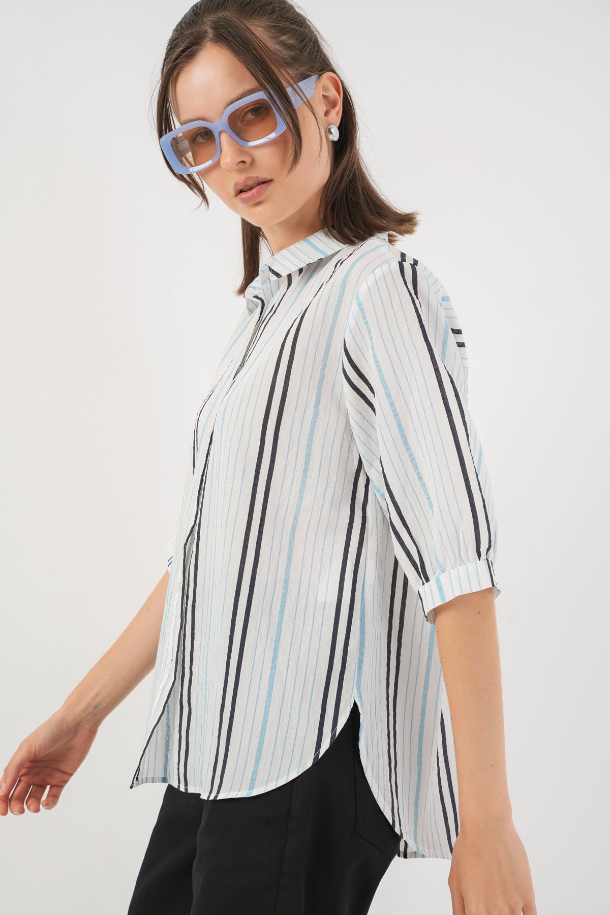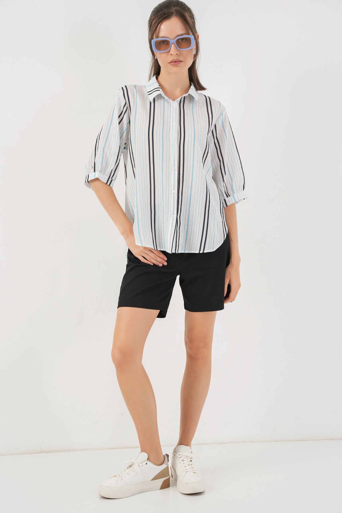 BGD Women Women's Striped Short Sleeve Shirt 20345 - Light Blue - Sagunto
